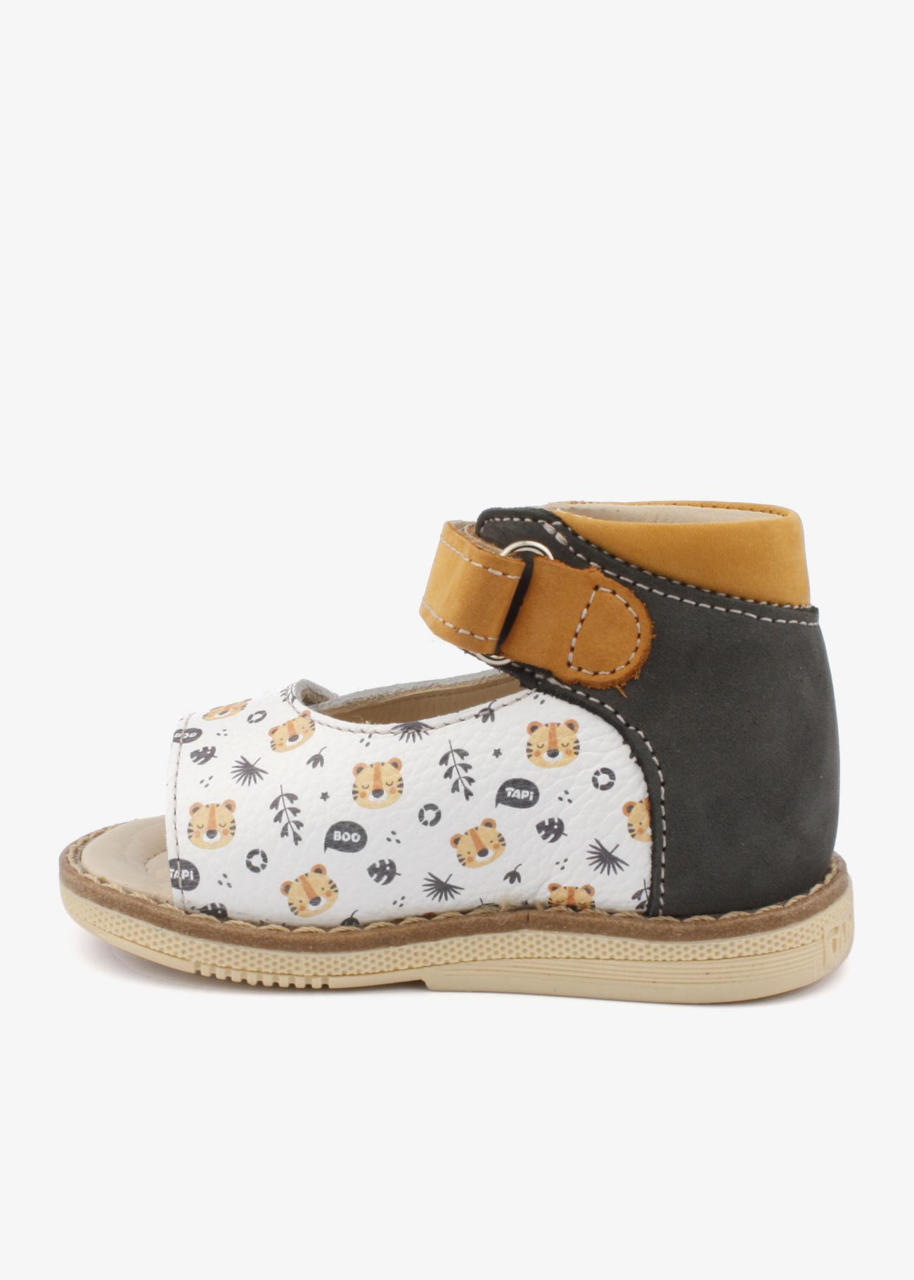 Идеальные профилактические сандалии для самых маленьких. Полностью из натуральной кожи, с жестким задником и супинатором. Подойдут на любую полноту за счет 2х липучек. Модель декорирована красивым и интересным принтом с животными.
