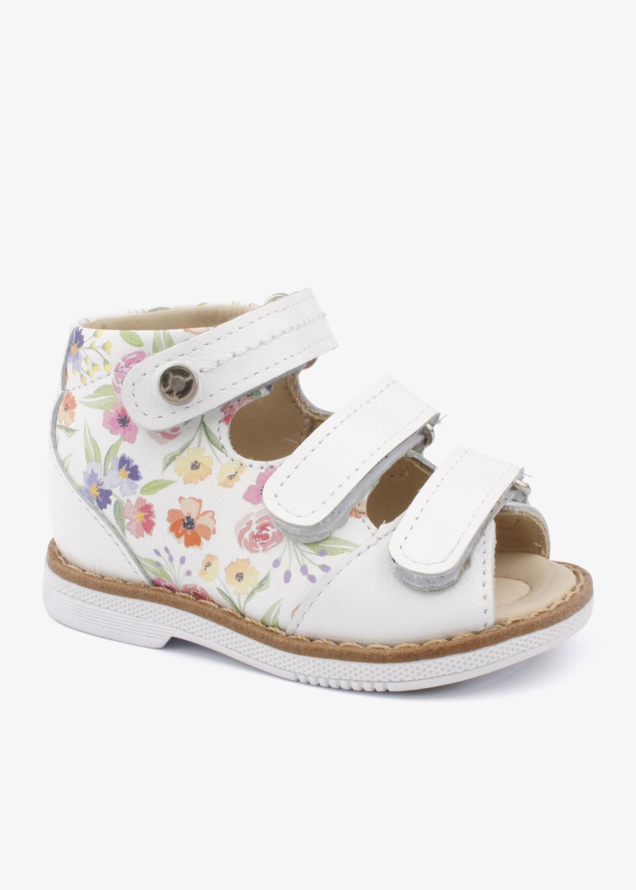 Идеальные профилактические сандалии для самых маленьких. Полностью из натуральной кожи, с жестким задником и супинатором. Подойдут на любую полноту за счет 3х липучек. Модель декорирована красивым цветочным принтом.