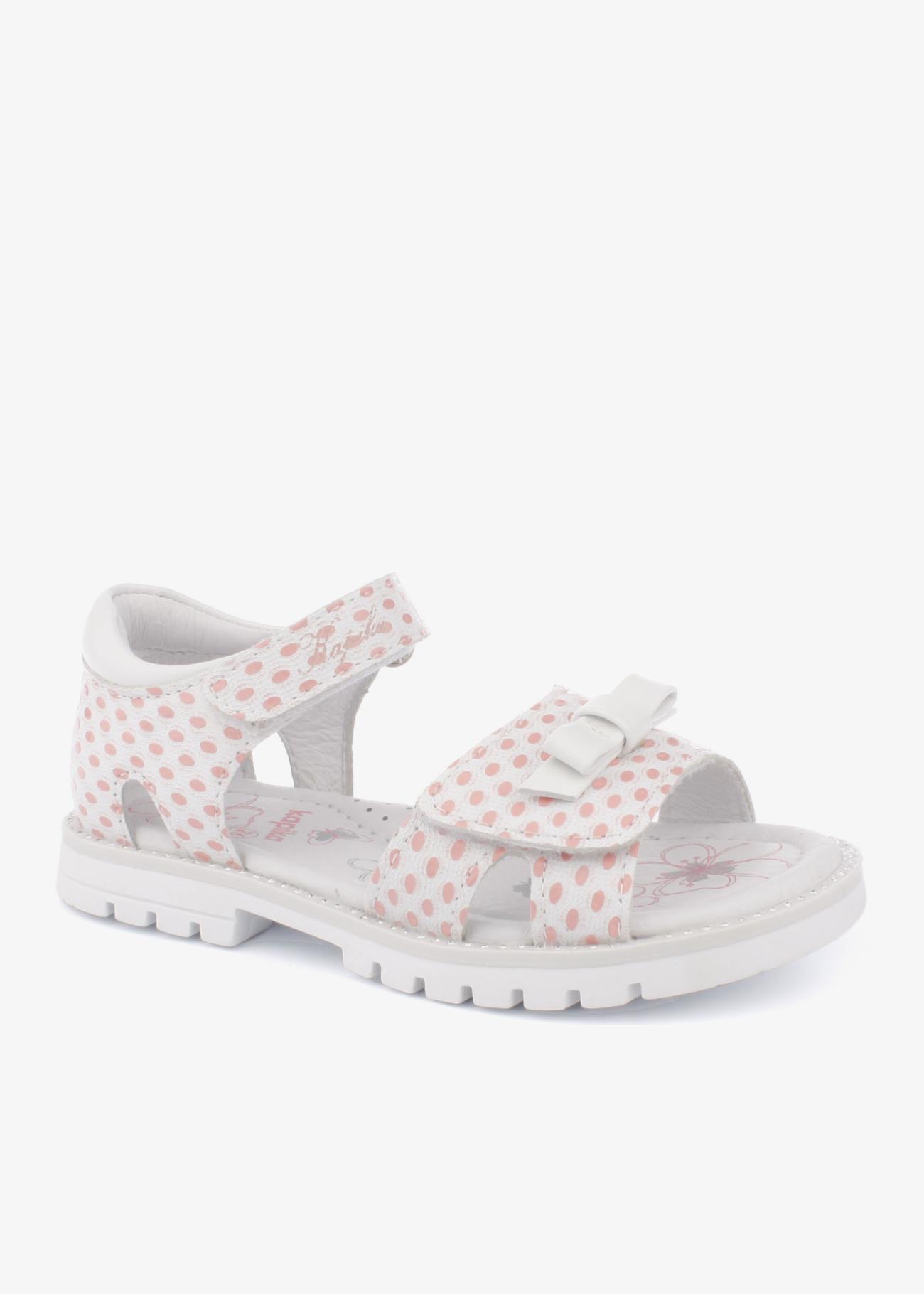 Очень красивые сандалии Kapika. Регулируются по полноте 2мя липучками. Анатомическая стелька, жесткий задник, гибкая носочная часть. Декорированы бантиком на липучке. По периметру подошвы искрятся стразы.