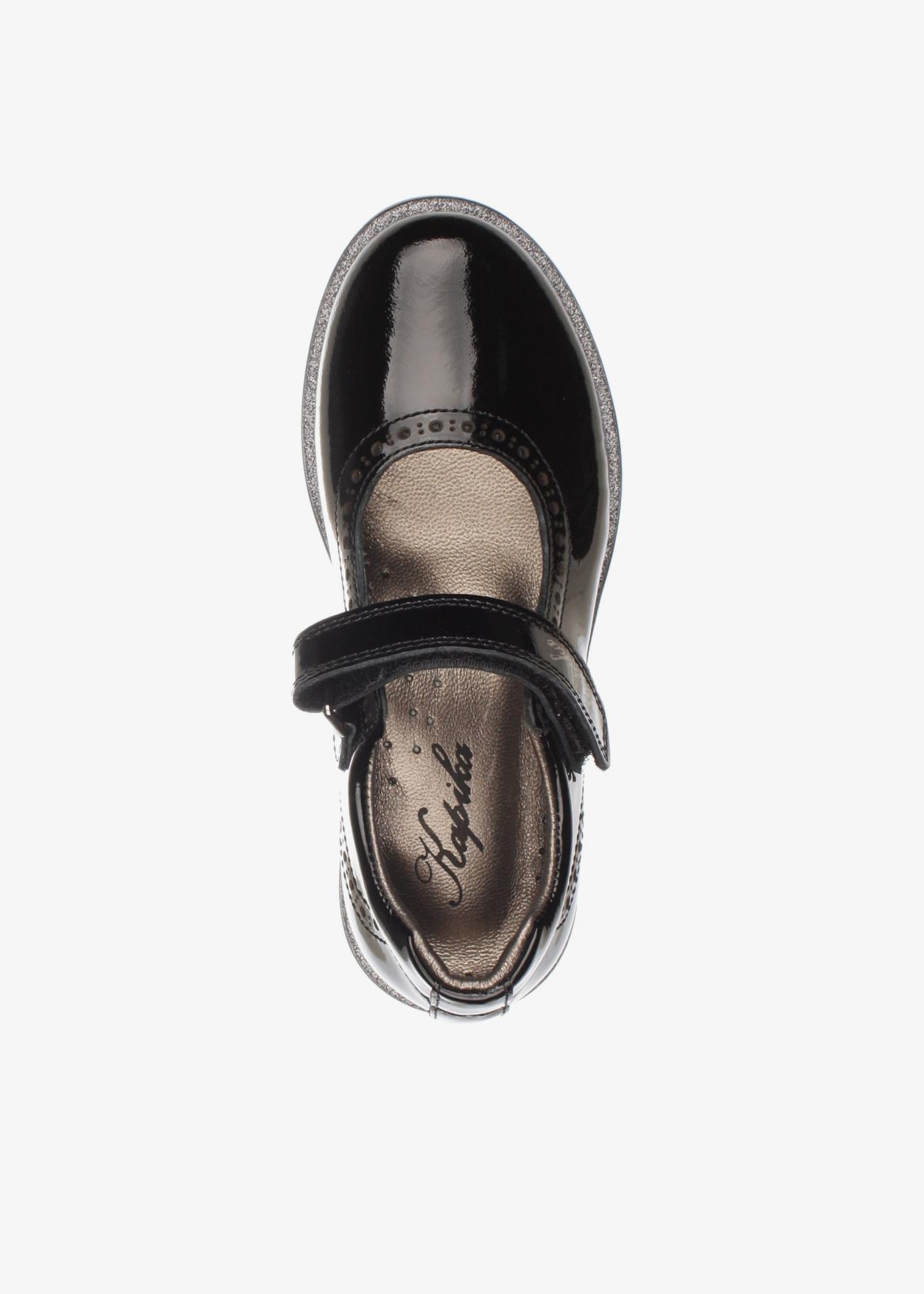 Очень стильные лаковые туфли Kapika для девочек. Полностью натуральная лаковая кожа, красивый дизайн. Анатомическая стелька с relax-эффектом, жесткий задник, подсводник.