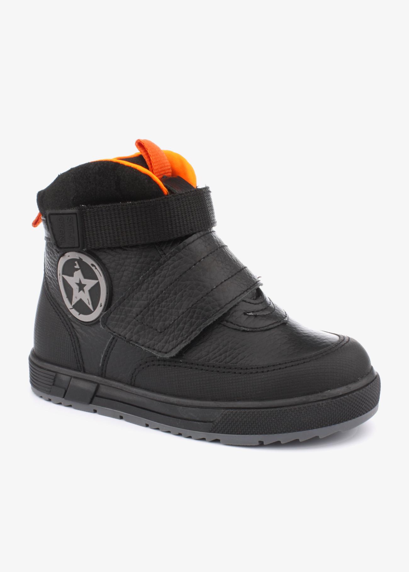 Очень стильные ботинки Shagovita для мальчиков. Полностью натуральная кожа, внутри шерстяная байка. Жесткий задник. Температурный режим от -5 до 10 градусов. Носок с защитой от сбивания. Подходят на любую полноту за счет липучек.