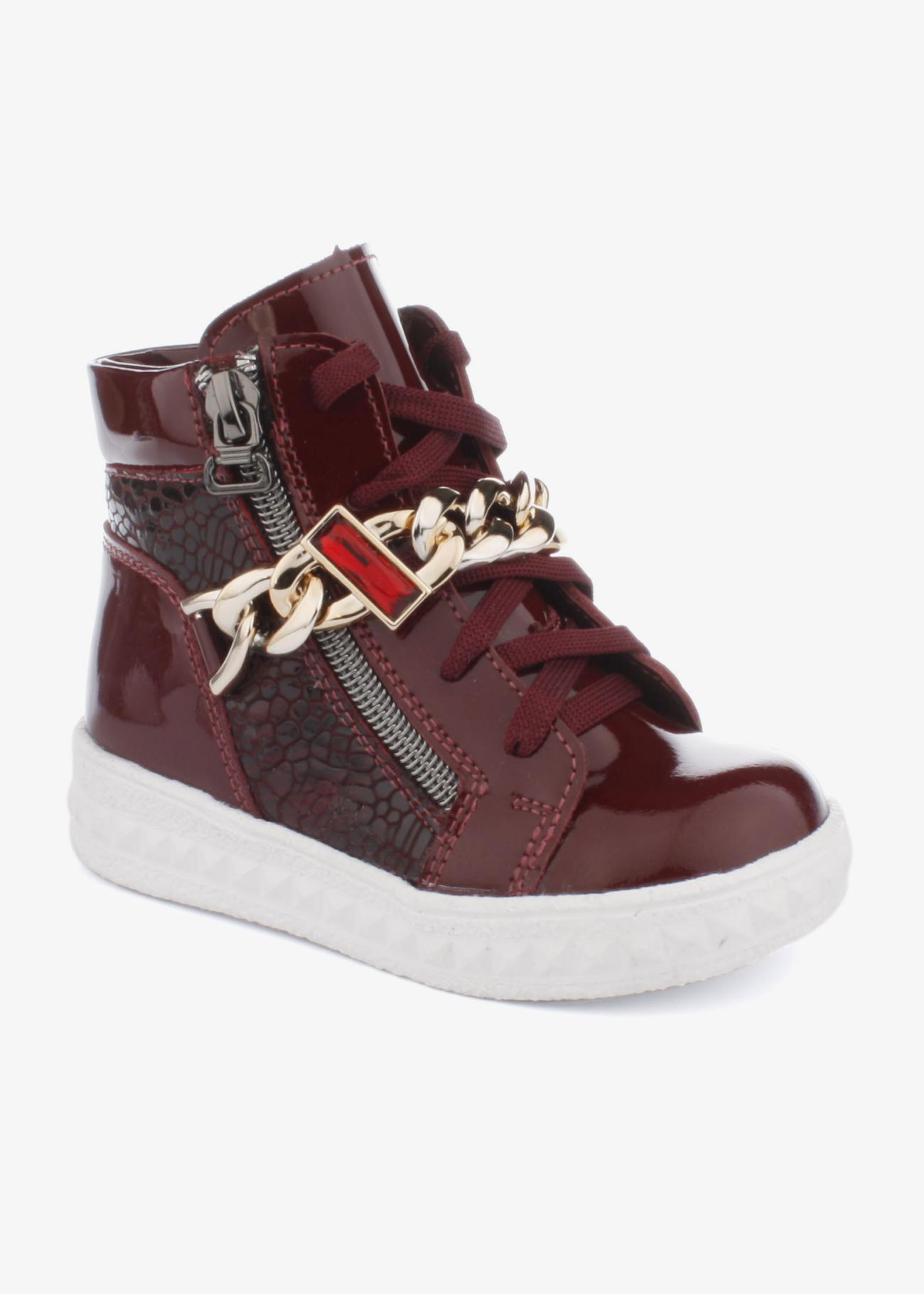 Очень стильная модель демисезонных ботинок для девочек. Модель декорирована цепочкой. По бокам 2 молнии и шнуровка. Отлично подойдут на любую полноту и подъем. Температурный режим от 10 градусов до минус 5 ти.