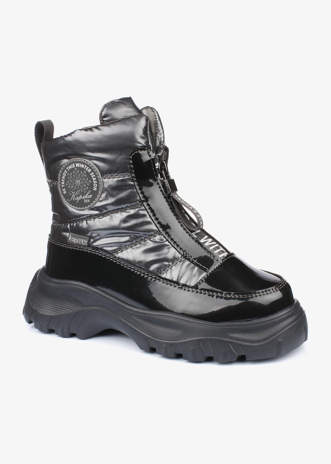 Стильные и красивые зимние мембранные ботинки Kapika. Язычок прошит почти до самого верха, что предотвращает попадание влаги и снега во внутрь обуви. Подкладка из натурального овечьего меха, обеспечит тепло и циркуляцию воздуха, а перфорированная фольга в стельке сохранит тепло, надежно защищая от холода. Протектор подошвы имеет повышенное сцепление и максимальный эффект против скольжения.Температурный режим до -25/30 градусов