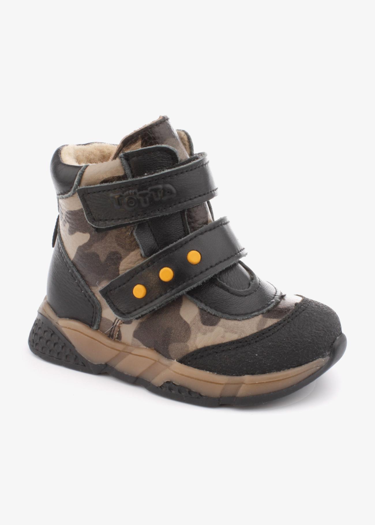 Зимние ботинки Тотта для мальчиков идеально подходят для холодных и снежных условий. Изготовленные из водоотталкивающей натуральной кожи с теплой войлочной подкладкой, они обеспечивают ногам тепло и сухость. Две удобные липучки позволяют быстро и легко настраивать ботинки на ногу, что особенно важно для детей, часто находящихся на улице в зимний период. Укрепленный задник и анатомическая стелька способствуют поддержанию правильной постановки стопы, в то время как гибкая, но прочная подошва ТЭП гарантирует отличное сцепление с поверхностью и долговечность. Эти ботинки сочетают в себе функциональность, комфорт и стиль, делая их отличным выбором для активного зимнего сезона.