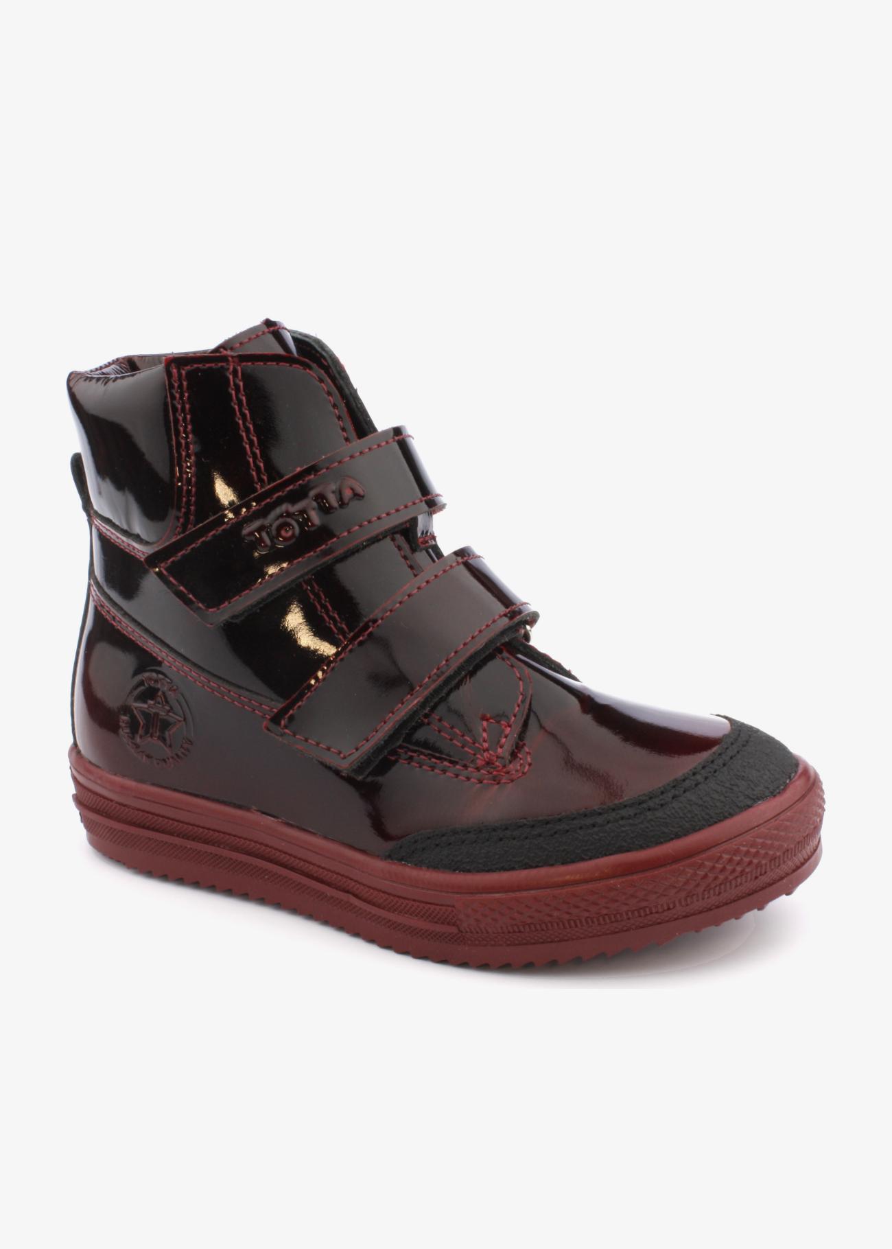 Демисезонные ботинки Тотта на байке. Модель выполнена из натуральной лаковой кожи. Внутри байка. Носочная часть с защитой от сбивания. Температурный режим от -5ти до +10 градусов.