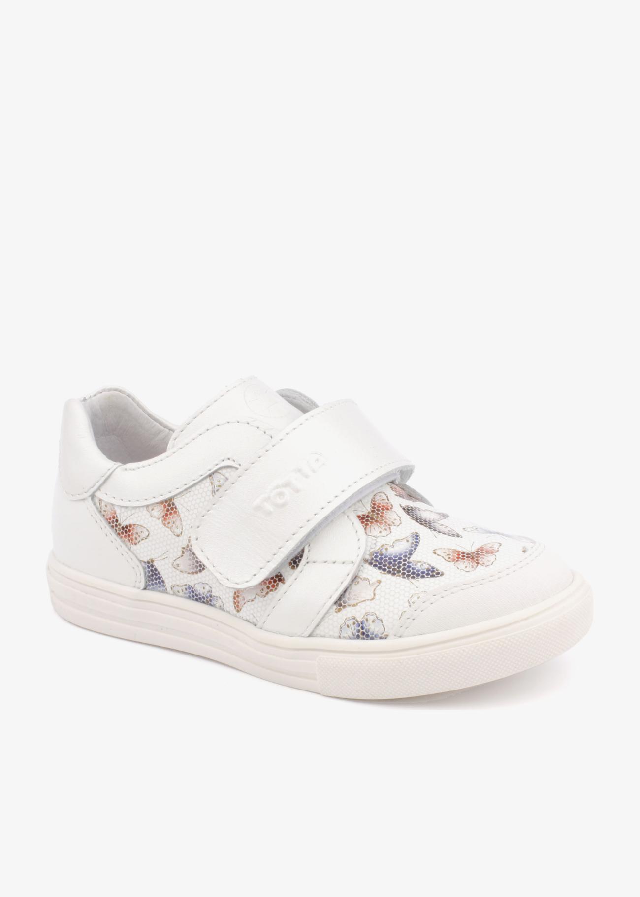 Новиночка! Кеды Тотта полностью из натуральной кожи. Анатомическая стелька, жесткий задник, подсводник, регулируются по полноте липучкой. Носочная часть с защитой от сбивания. Красивый принт с бабочками.
