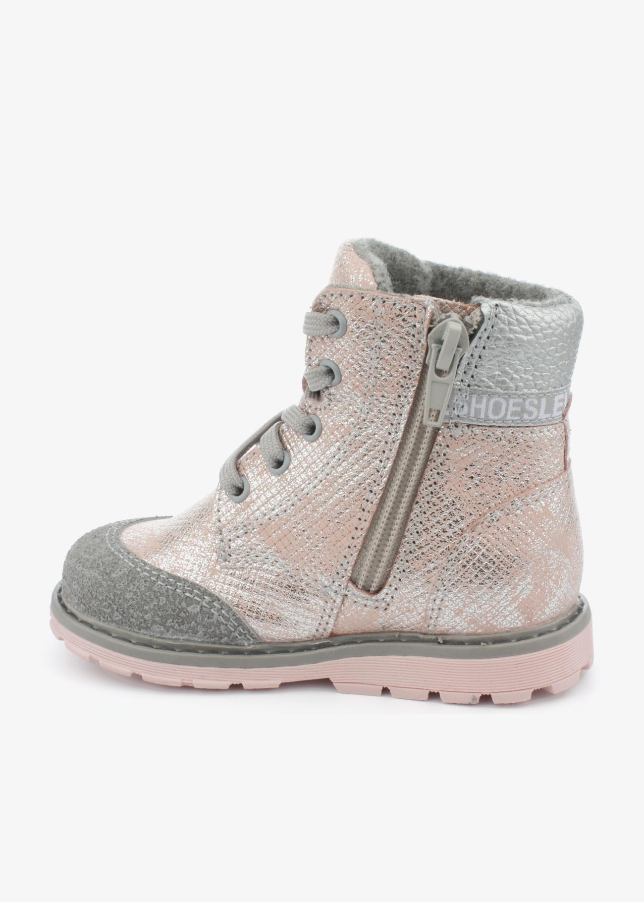 Очень стильные и красивые ботинки Лель для девочек. Красивый переливающийся пудровый оттенок. Выполнены снаружи из натуральной кожи. Внутри утеплены шерстяной байкой. Температурный режим от -5ти до +10 градусов тепла. Носочная часть с защитой от сбивания. Каблук Томаса, жесткий задник, подсводник. Очень легкие по весу. Качество исполнения превосходное. Рекомендуем!
