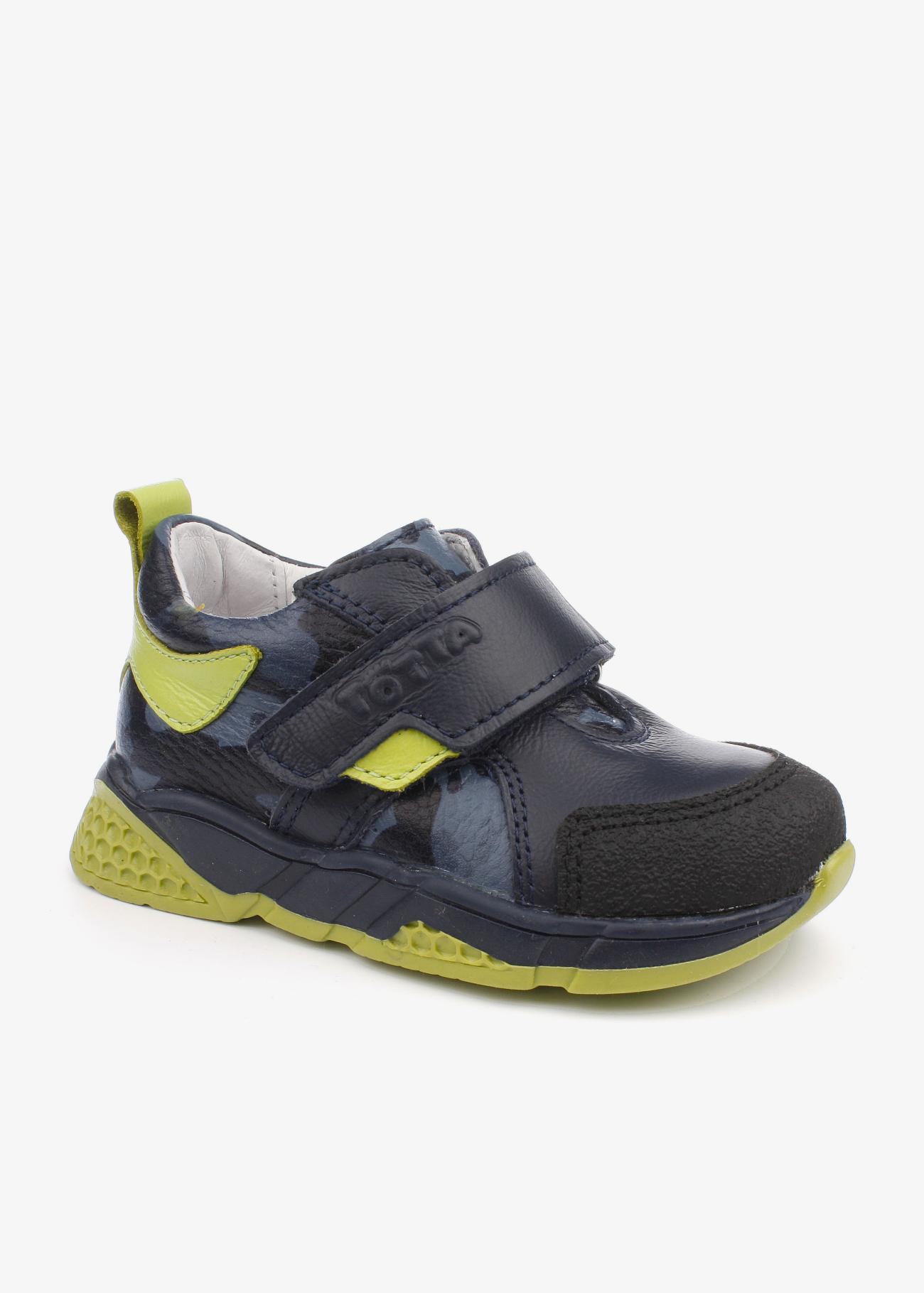 Стильные кожаные кроссовки Тотта для мальчиков. Регулируются по полноте липучкой. Носочная часть с защитой от сбивания. Натуральная кожа, подсводник, жесткий задник. Подходят на любую полноту.