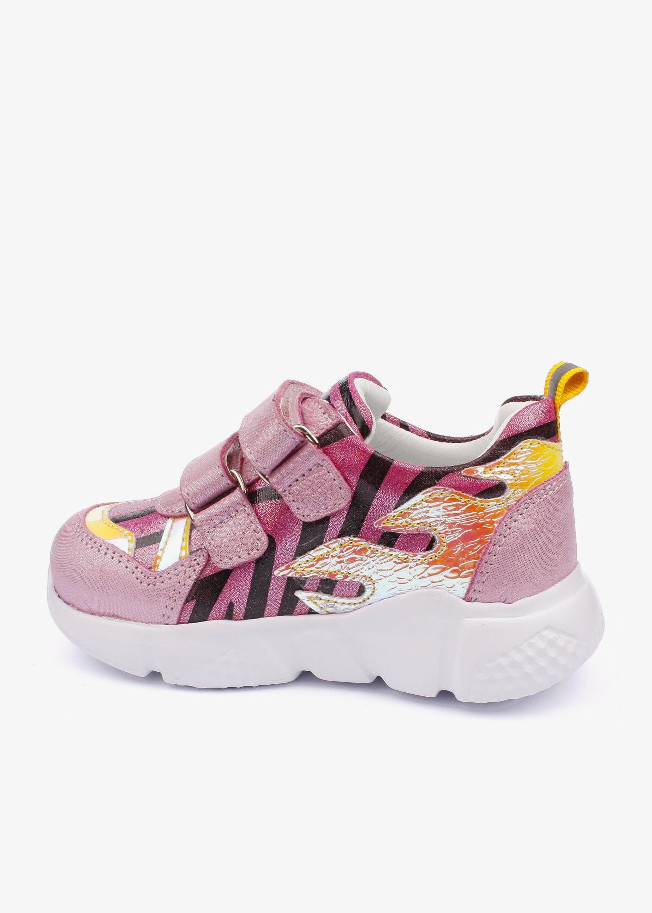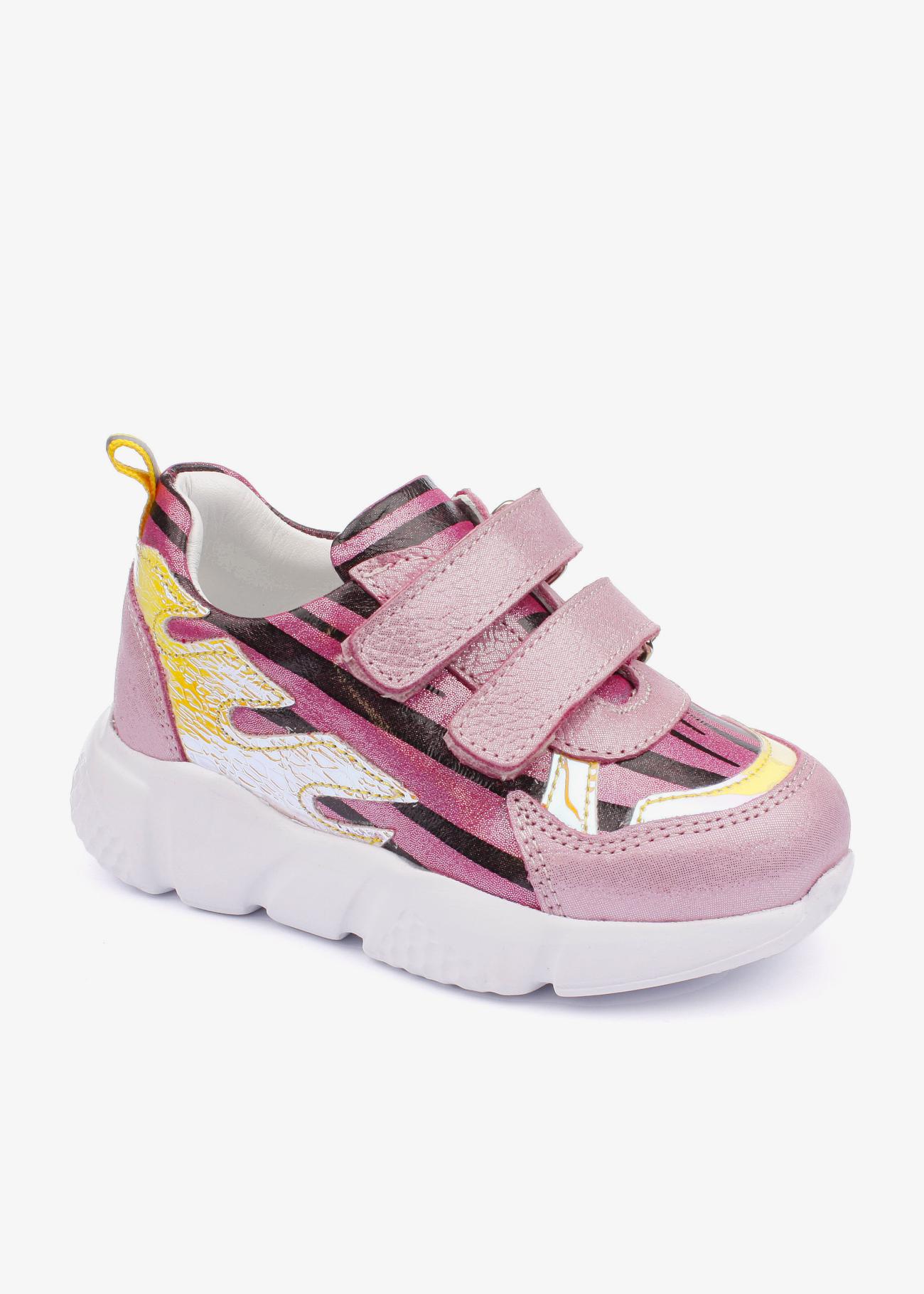 Кроссовки из натуральной кожи с лазерной обработкой. Регулируются по полноте 2мя липучками. Легкие, дышащие, переливаются на свету. Анатомическая стелька, жесткий задник.