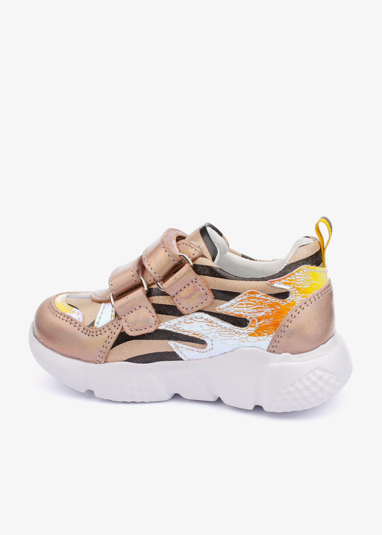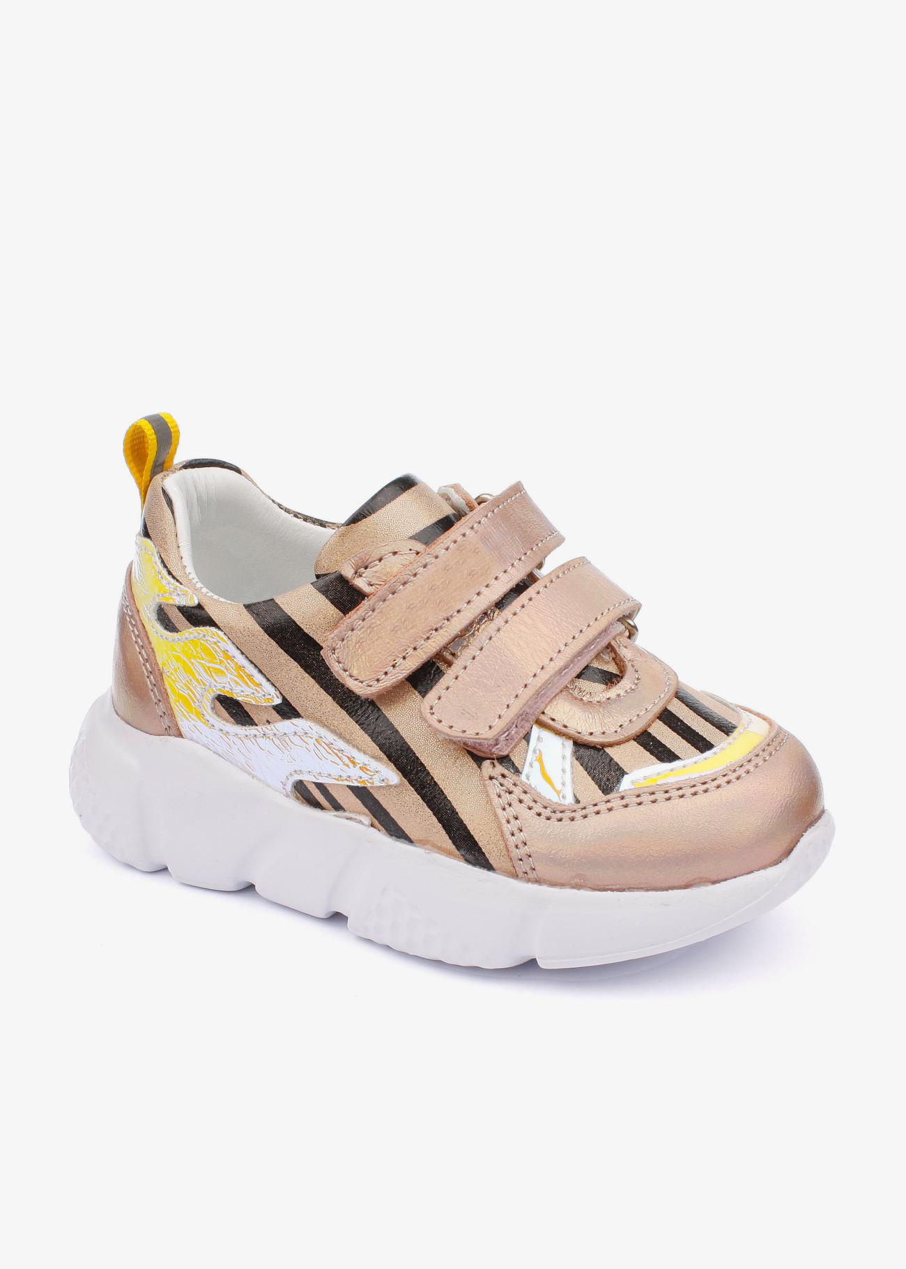Кроссовки из натуральной кожи с лазерной обработкой. Регулируются по полноте 2мя липучками. Легкие, дышащие, переливаются на свету. Анатомическая стелька, жесткий задник.