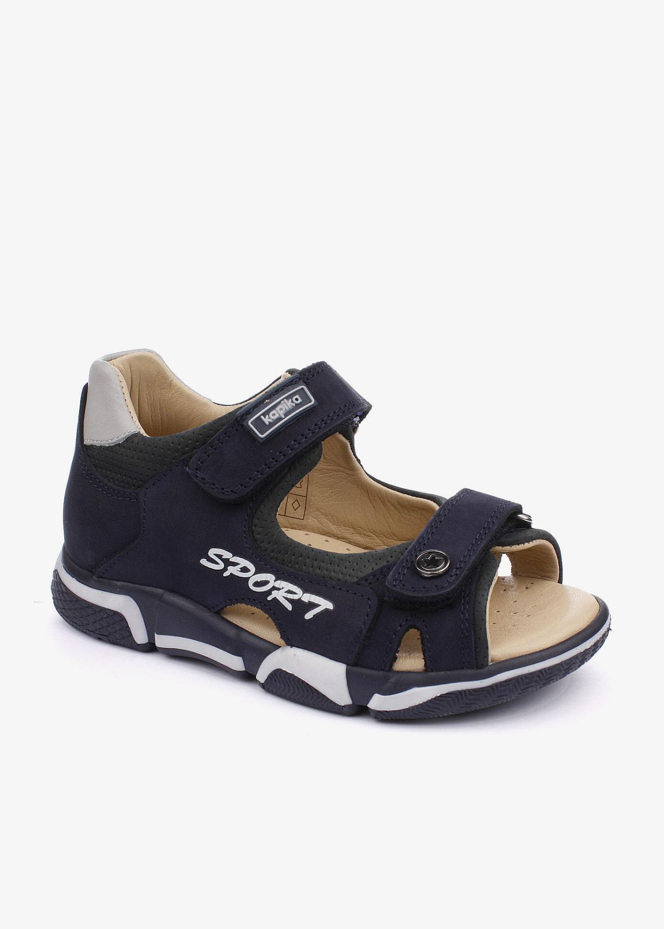 Стильные сандалии Kapika для ребят из натуральной кожи. Анатомическая стелька, жесткий задник. Регулируются 2мя липучками.