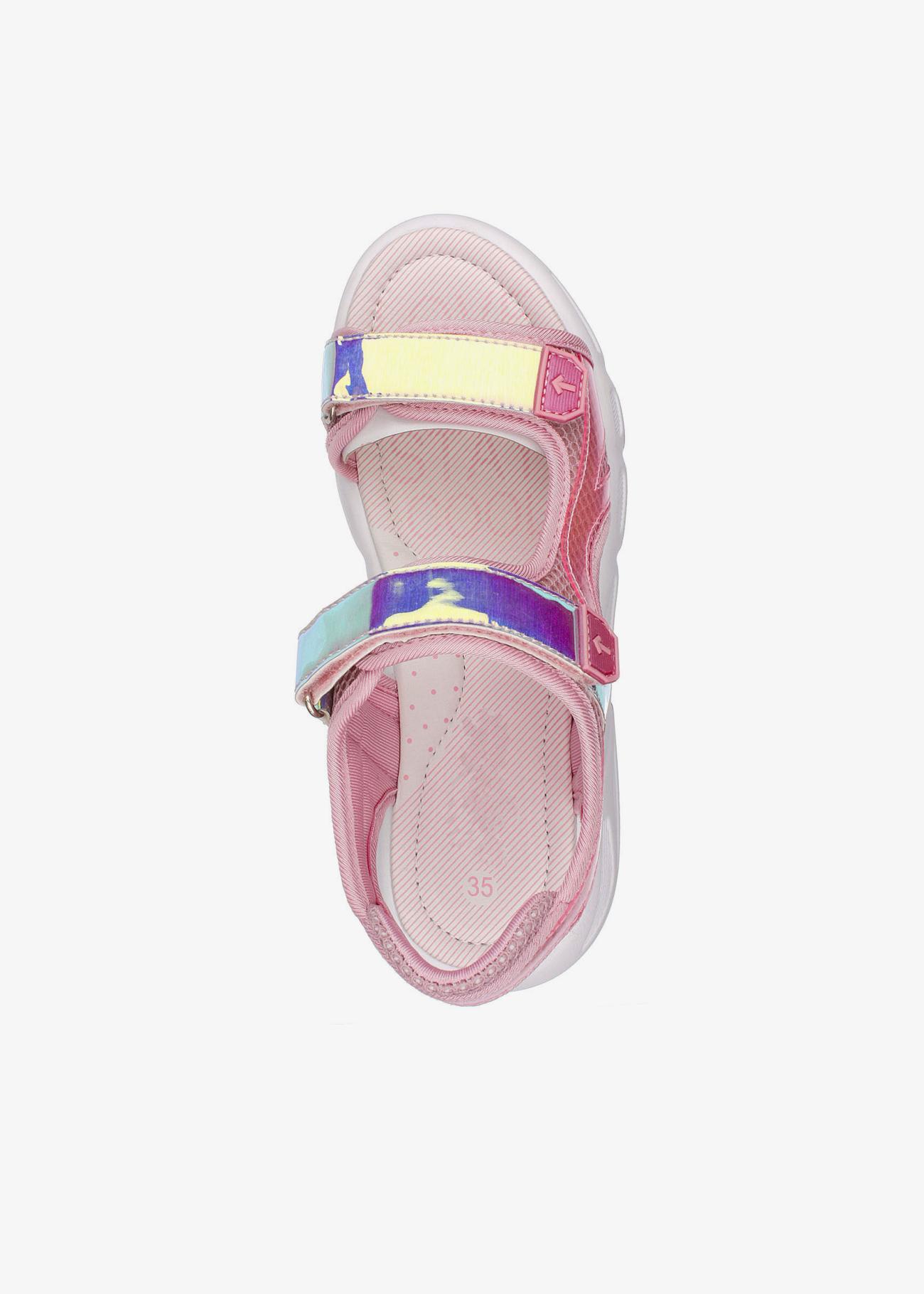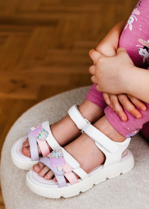 Сандалии для взрослых девчат. Легкие, удобные, садятся на любую полноту. Верх - искусственная кожа/текстиль, подклад-текстиль, стелька из натуральной кожи с подсводником. Красивая яркая расцветка.