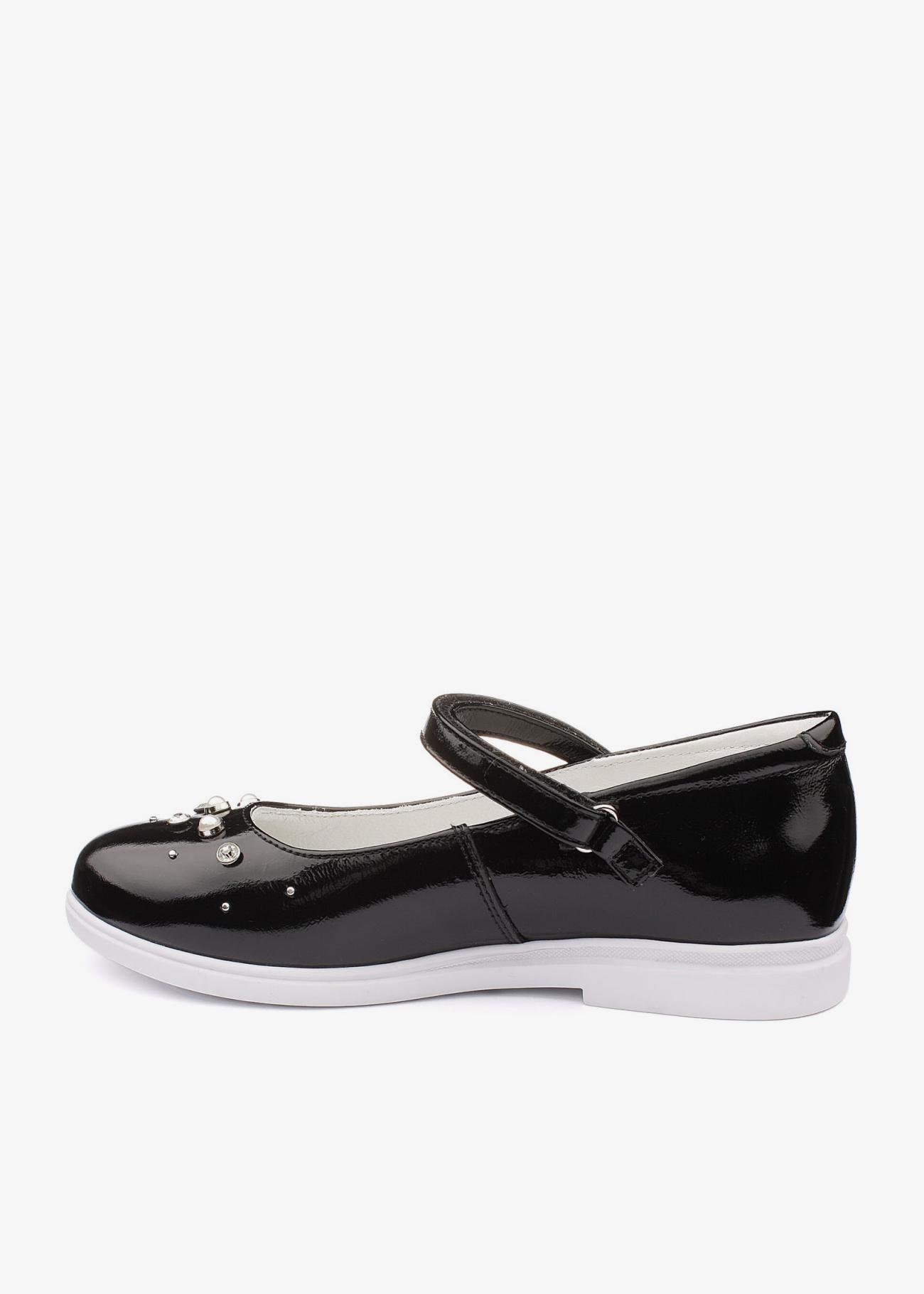 Изящные туфли-лодочки станут превосходным вариантом для сменки. Дизайн модели дополнен элегантным жемчугом. Белая подошва НЕ ЧЕРТИТ, то есть не оставляет следов на напольном покрытии, что немаловажно для сменной обуви. Функциональный ремешок на липучке обеспечивает простой процесс обувания и надежную фиксацию модели на ноге. Анатомическая стелька с подсводником и подпяточником обеспечивает абсолютный комфорт, способствует правильному распределению нагрузки на стопу при ходьбе и предотвращает развитие патологических изменений стопы. Гибкая подошва на небольшой танкетке гарантирует комфорт при ходьбе.