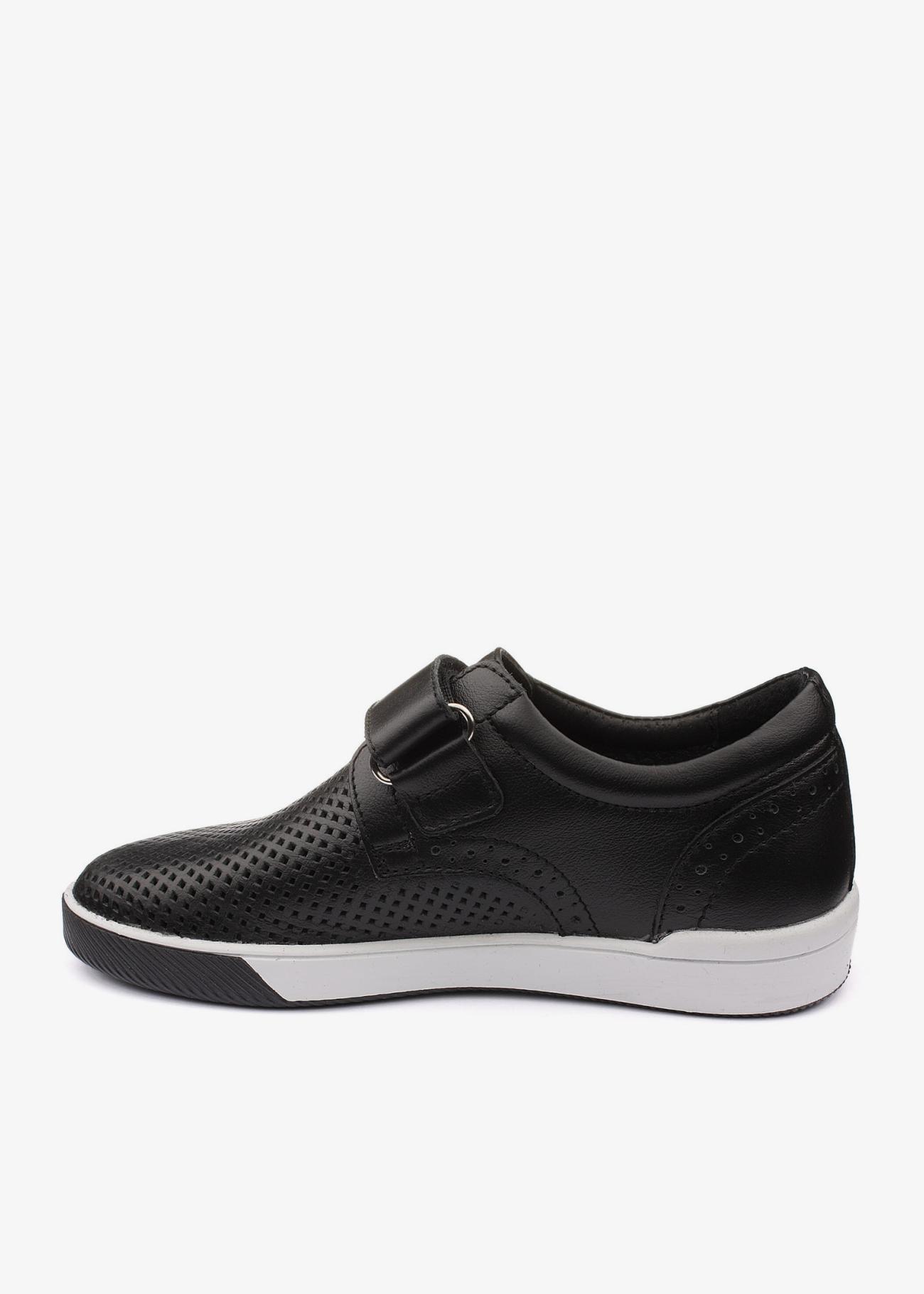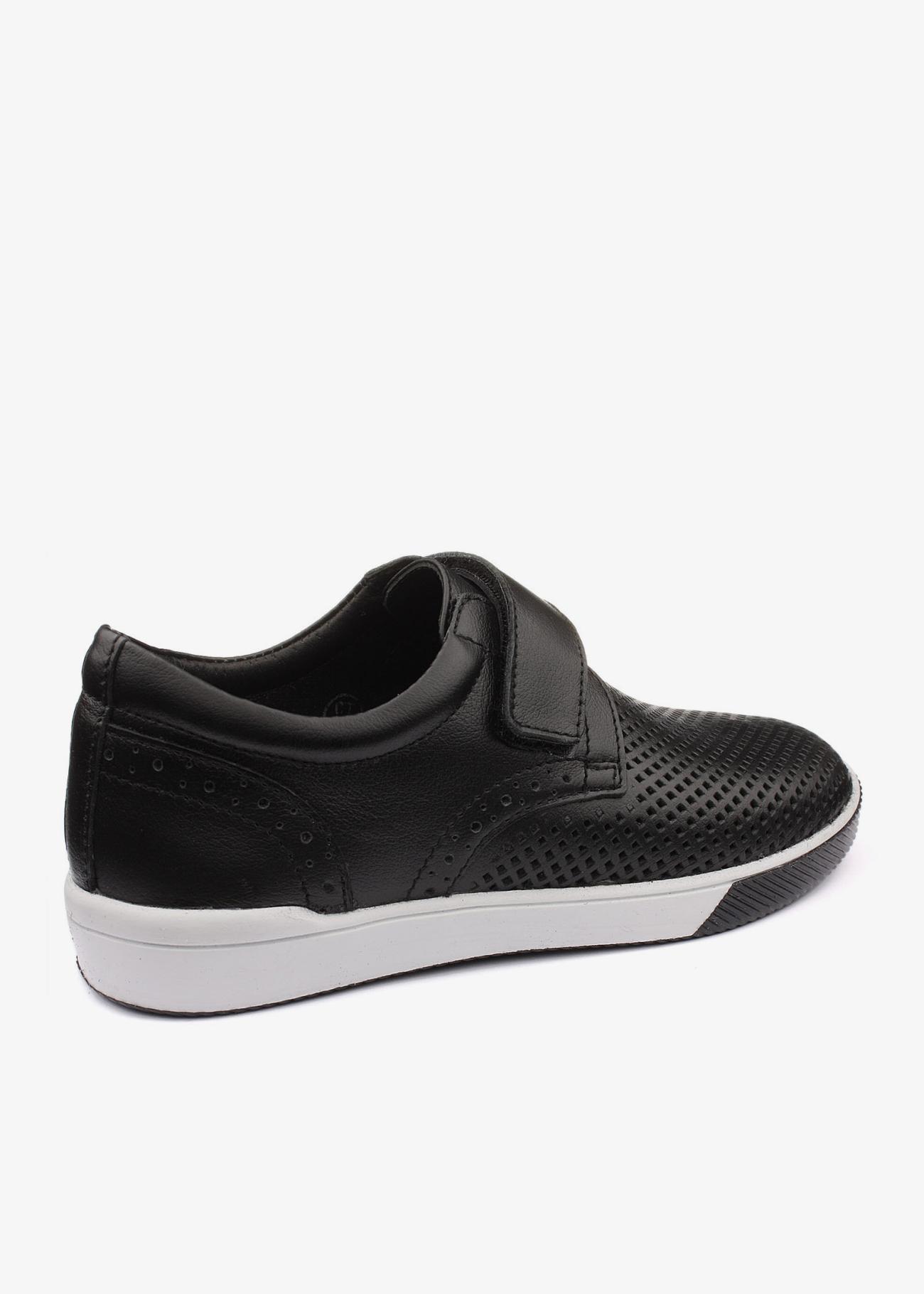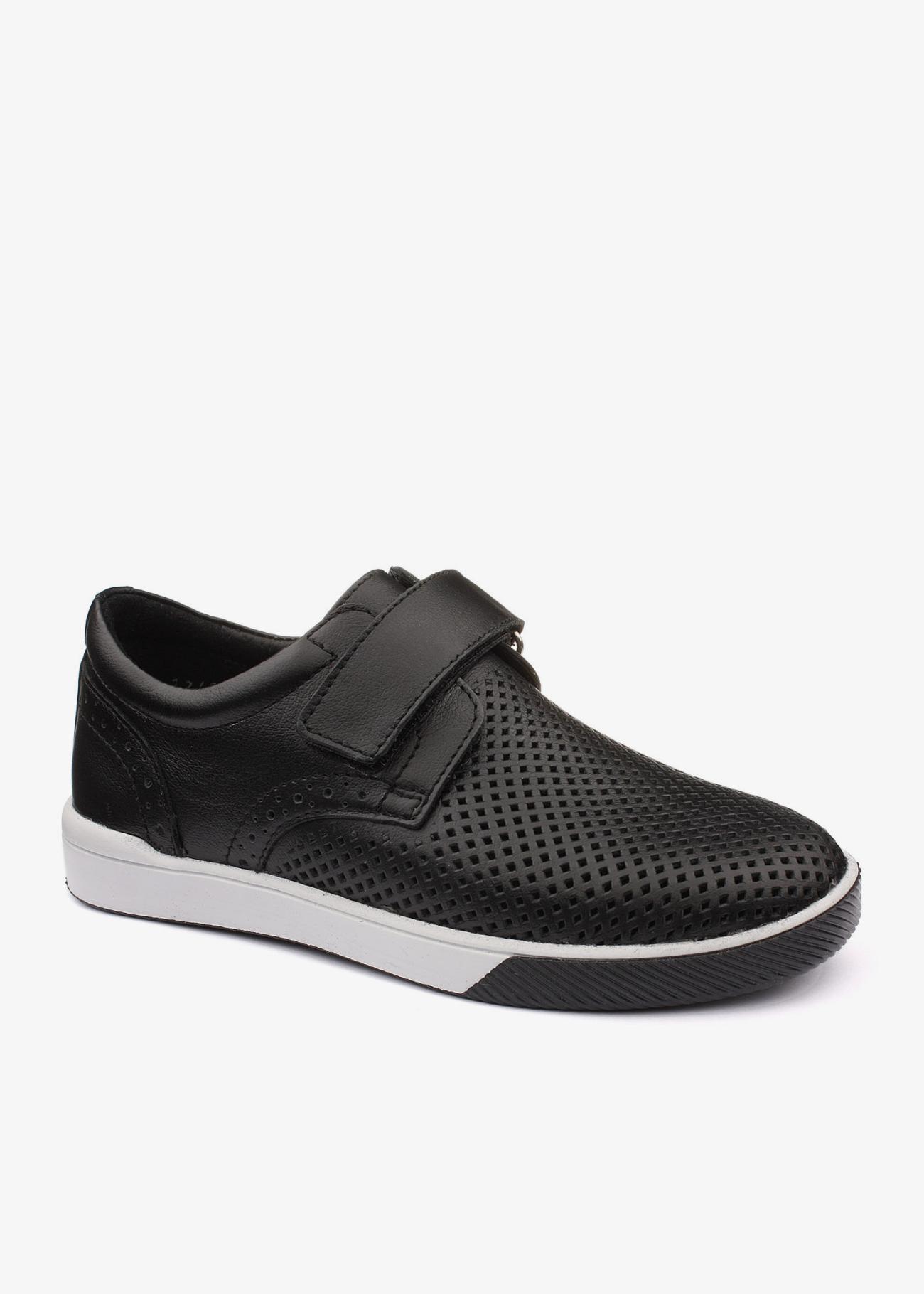 Стильные школьные мокасины из натуральной кожи. Удобная колодка. Анатомическая стелька, жесткий задник, липучка. Подходят на любую полноту. Сквозная перфорация позволит ножкам дышать в течение всего учебного дня. Светлая подошва.
