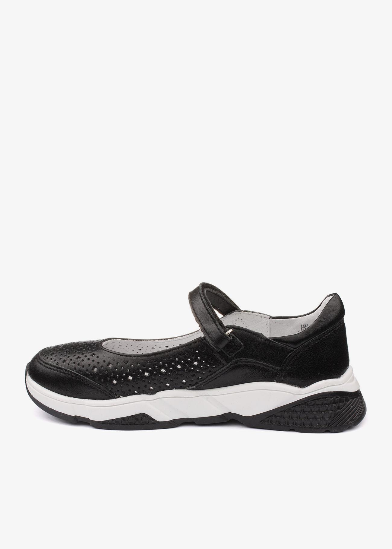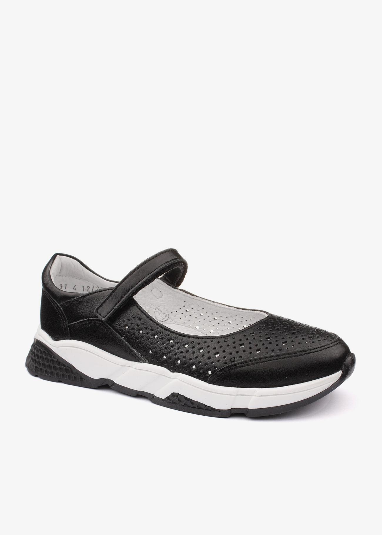 Стильные школьные туфли из натуральной кожи. Облегченная светлая подошва, удобная колодка, модель фиксирует ножку липучкой. Сквозная перфорация позволит ножкам дышать в течение всего учебного дня. Модель подходит на любую полноту.