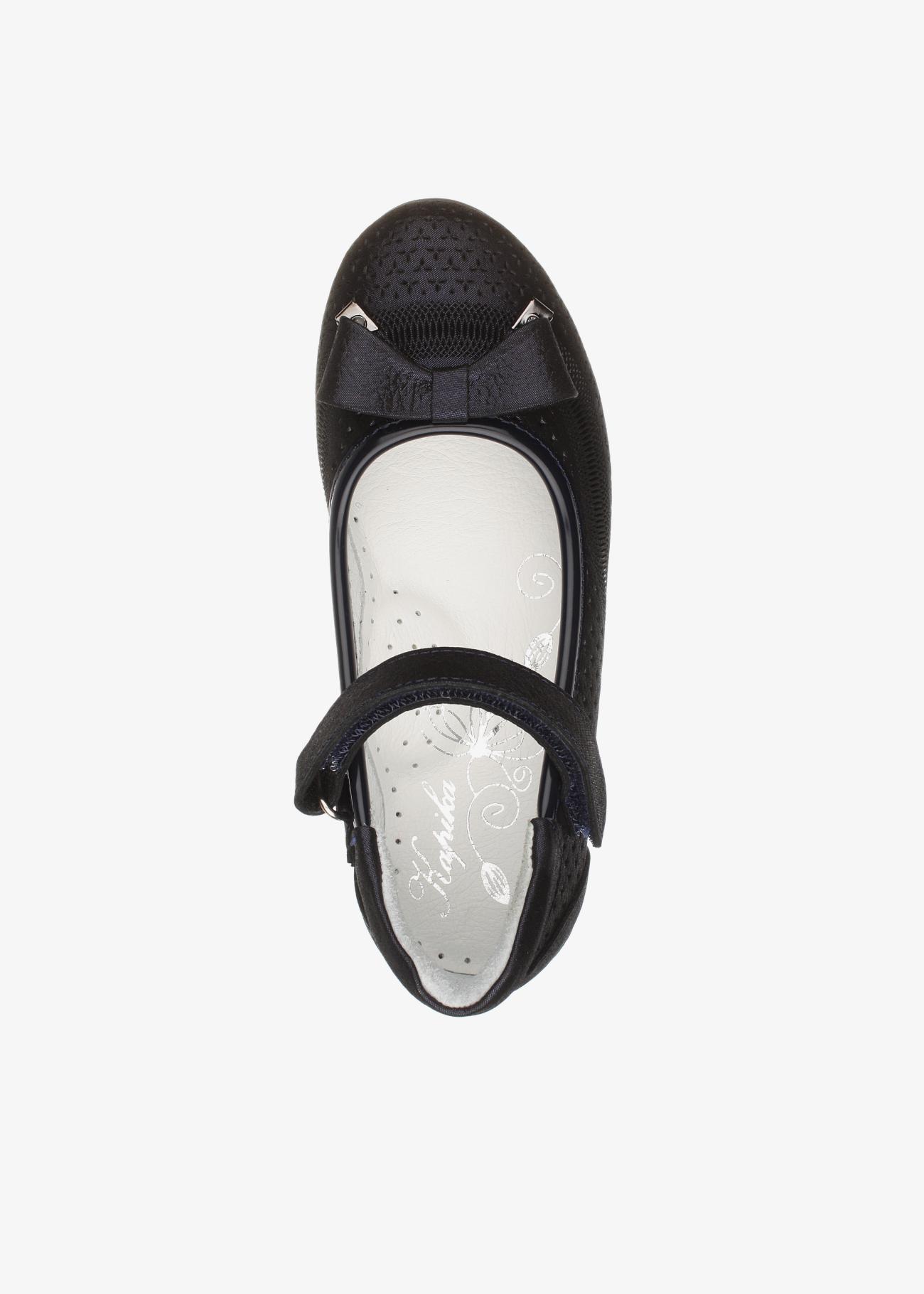 Красивые туфли-балетки Kapika из натуральной кожи с лазерной обработкой. Модель выполнена украшена бантиком. Небольшой каблучок, анатомическая стелька с подсводником. Жесткая пятка. Подходят на любую полноту.