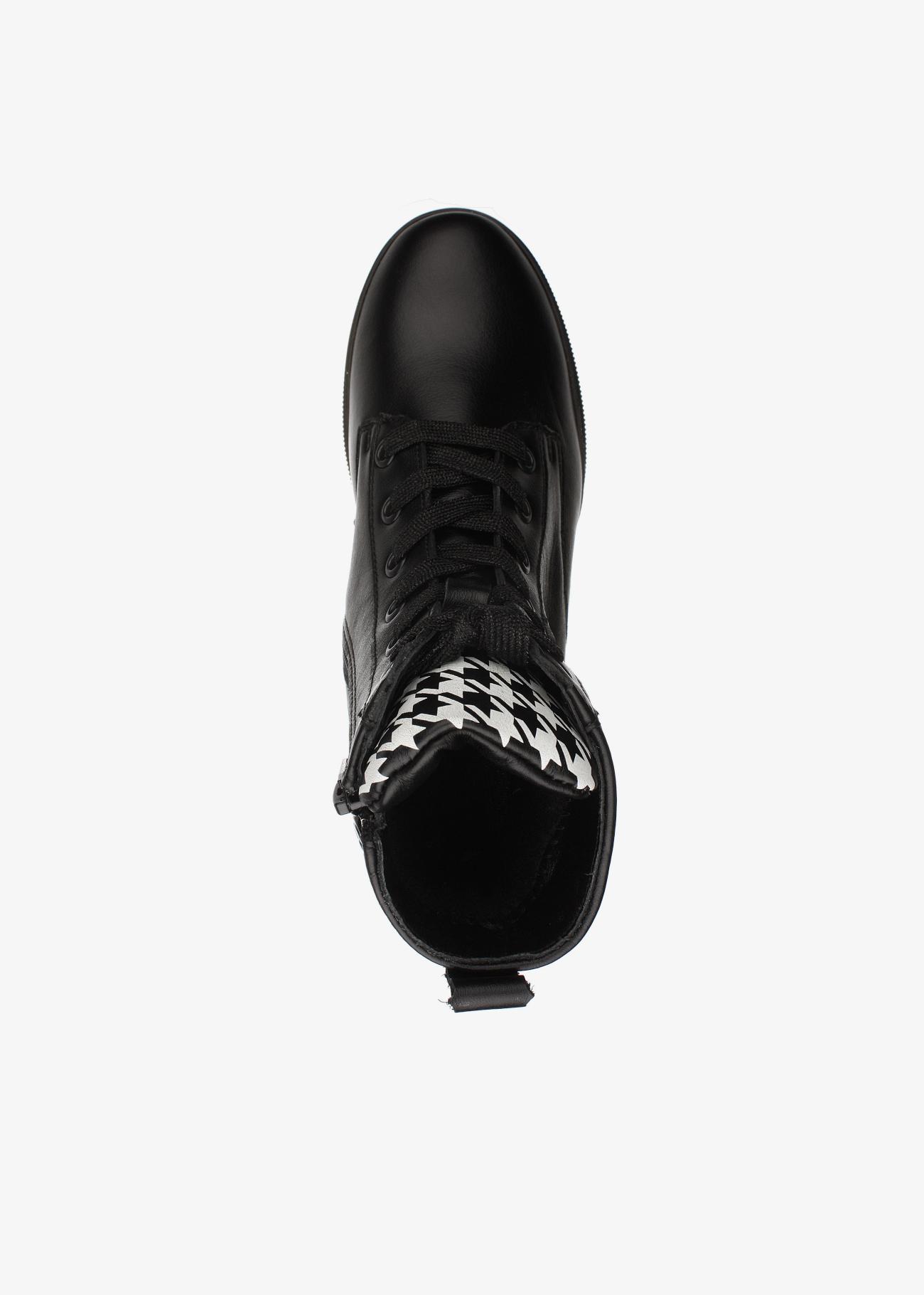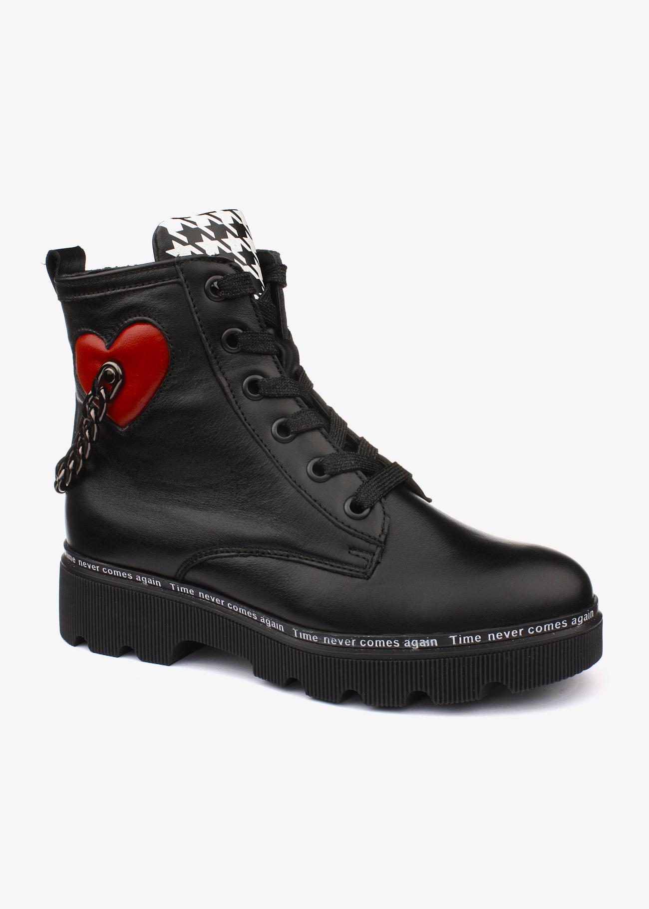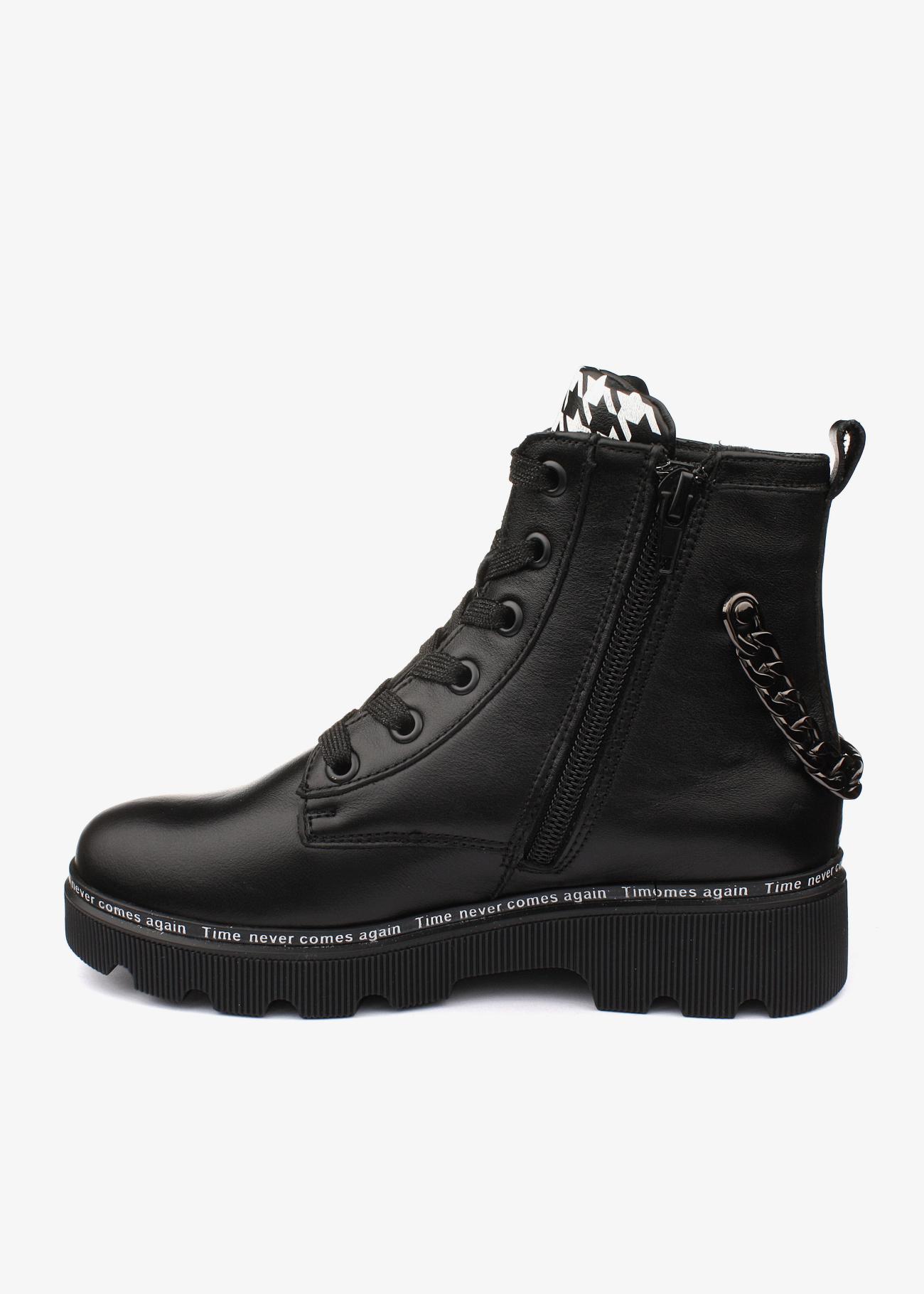 Трендовая модель утепленных ботинок Shagovita. Стильная подошва с надписью не скользит и защищает ноги от промерзания. Носочная часть с особым защитным покрытием защищает от появления царапин и надолго сохраняет прекрасный внешний вид обуви. Удобная шнуровка позволяет зафиксировать ботинки так, как удобно именно вам, а функциональная застежка-молния помогает быстро снимать и надевать обувь, не прилагая лишних усилий. Мягкая натуральная кожа создает комфорт при ходьбе. Теплая мягкая байка долго сохраняет тепло.
