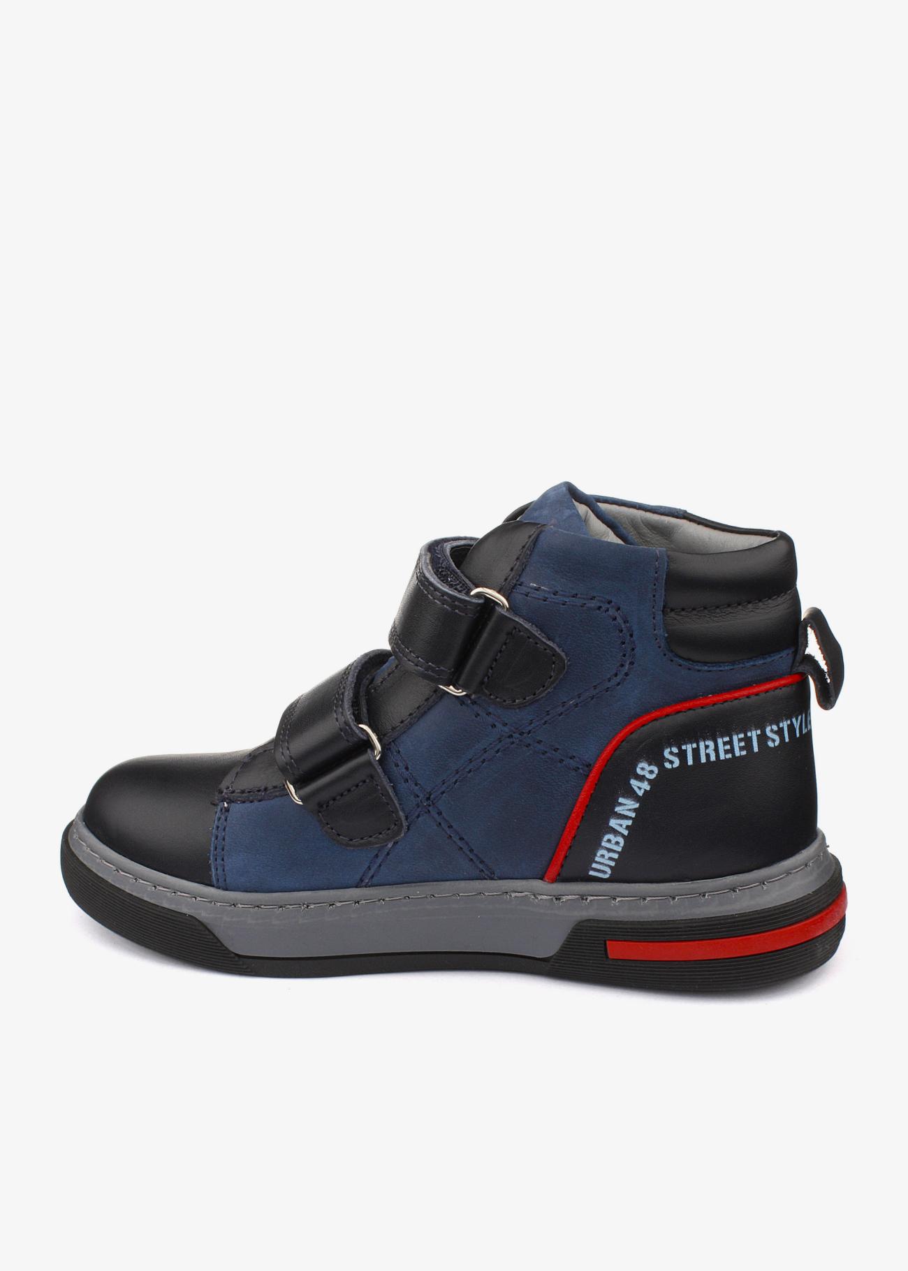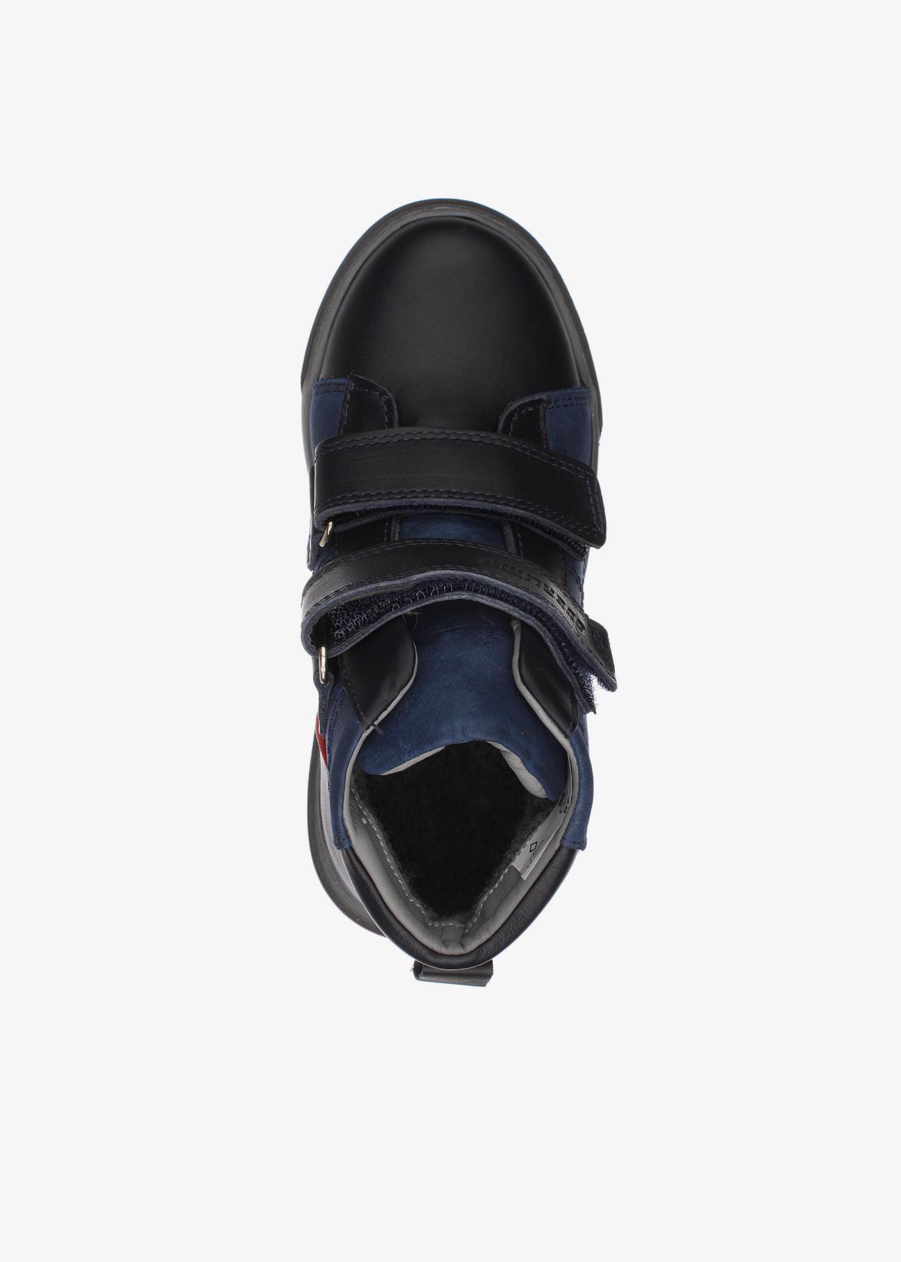 Красивые ботинки для мальчиков. Снаружи натуральная кожа, внутри шерстяная байка. Анатомическая стелька, жесткий задник. Модель подходит на любую полноту за счет липучек. До минус 5ти градусов.