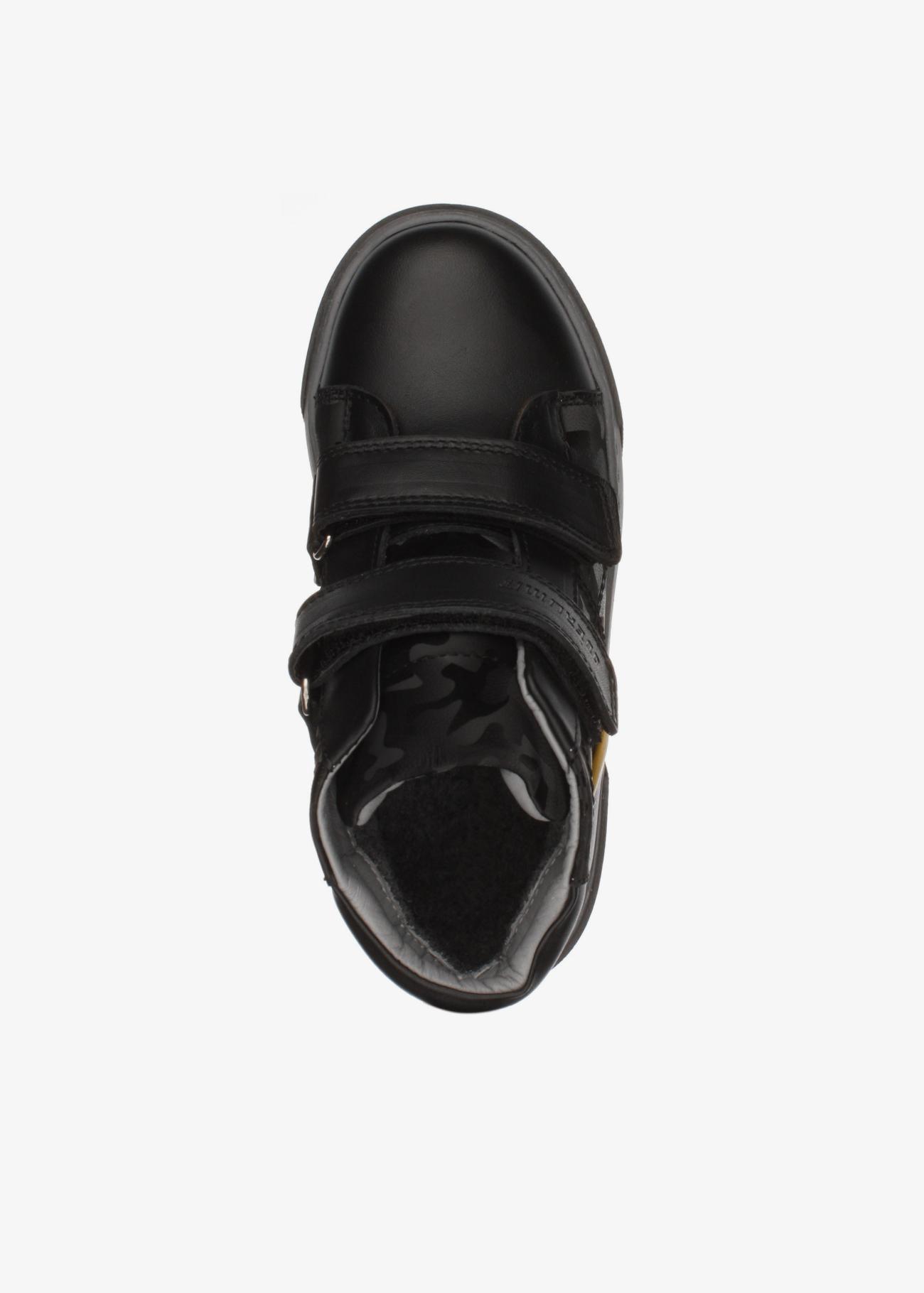 Утепленные ботинки в спортивном стиле. 2 липучки, жесткий задник, анатомическая стелька. Подходят на любую полноту. Снаружи натуральная кожа, внутри шерстяная байка. Температурный режим ориентировочно до минус 5ти градусов.