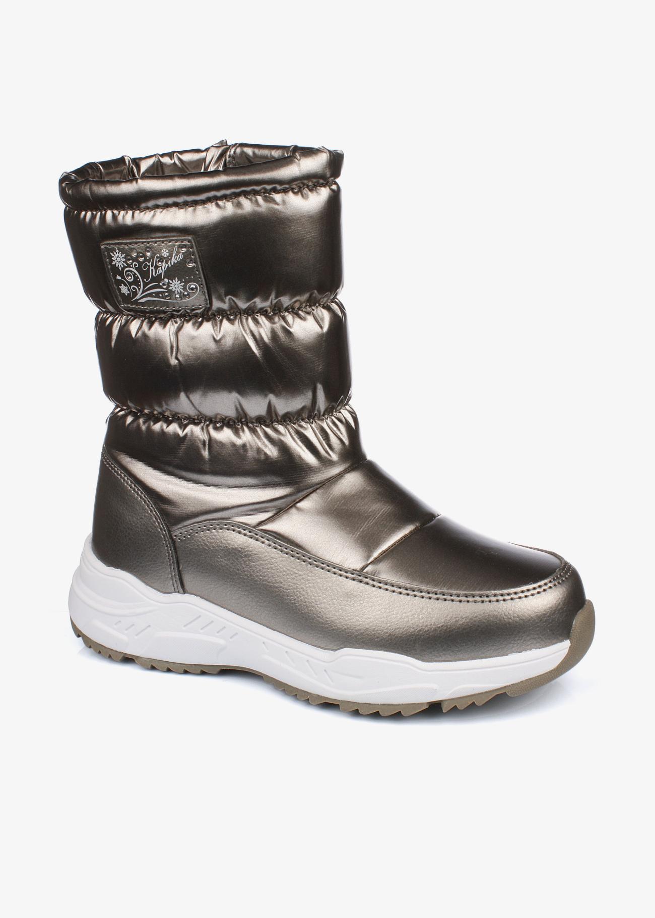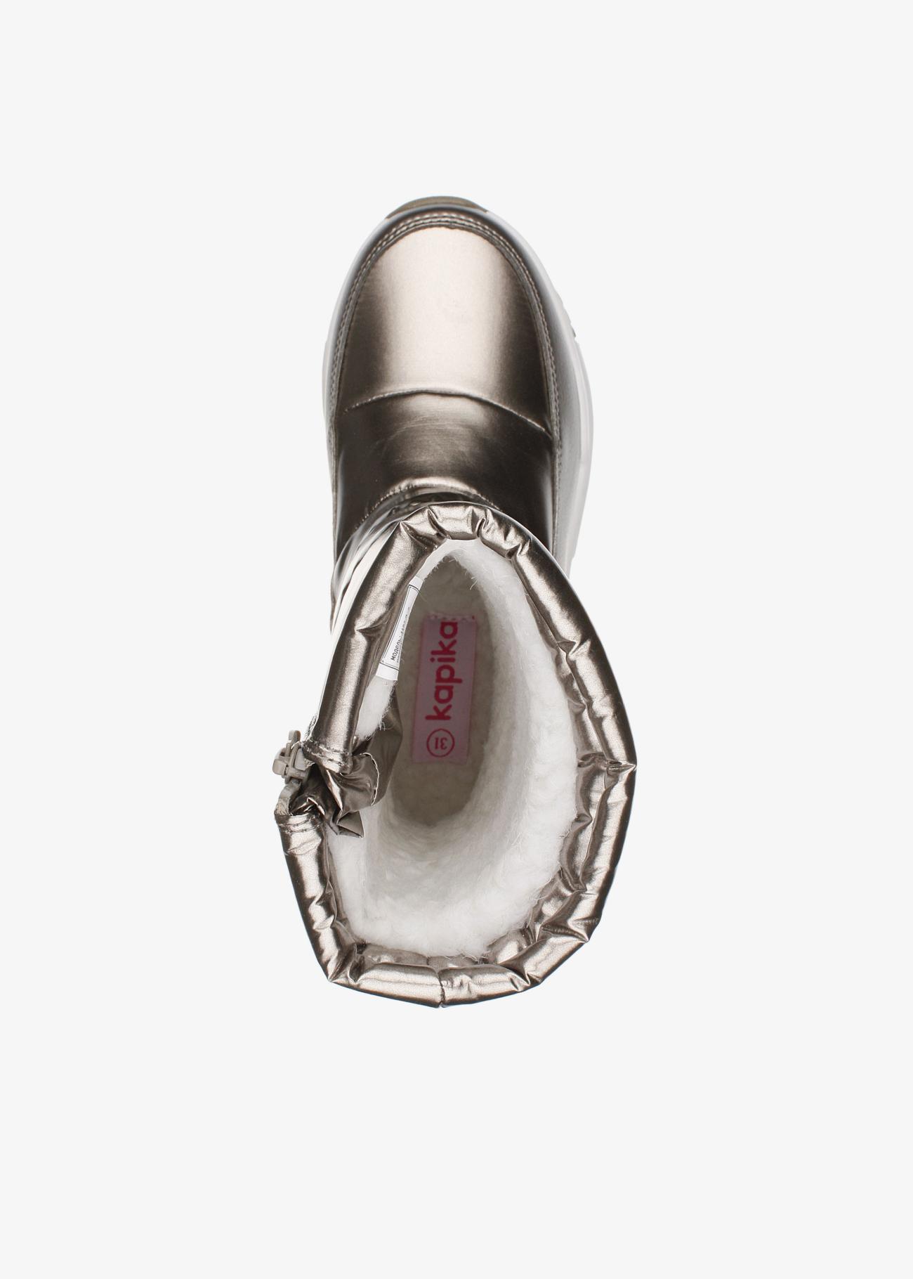 Стильные зимние дутики Kapika. Нескользящая подошва. На молнии, модель удобно снимать и обувать. Верх модели выполнен из гидрофобного текстиля (отталкивает воду, не пропускает влагу) и экокожи. Материал подкладки - шерстяной мех. Идеальная обувь для активных прогулок в холодное время года. Модель оснащена теплой стелькой с фольгой, что уберегает от охлаждения и обеспечивает сохранение тепла в течение длительного времени.