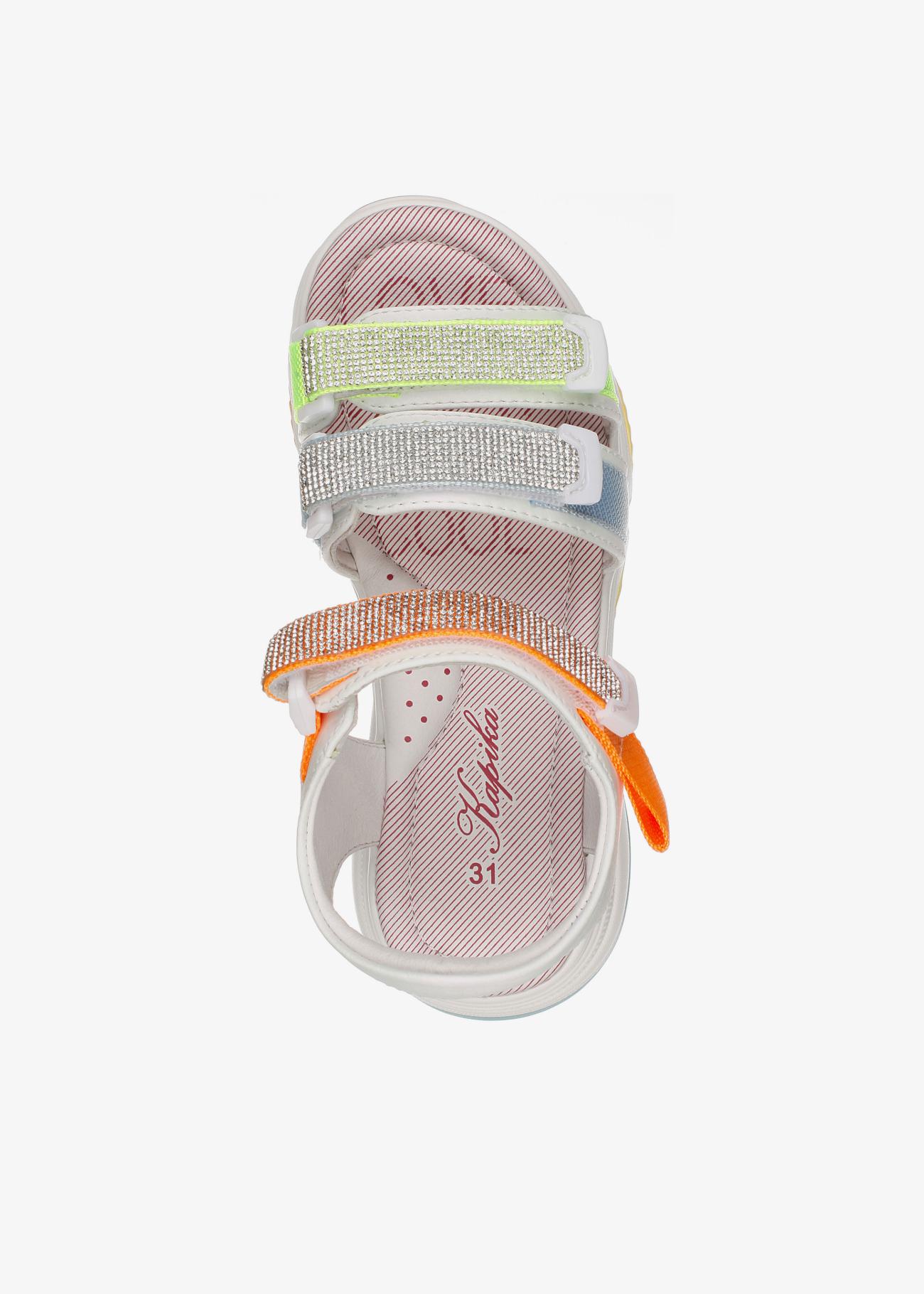 Очень красивые сандалии Kapika для девочек. Модель регулируется 3мя липучками по полноте, анатомическая стелька, жесткий задник, подсводник. Гибкая носочная часть.