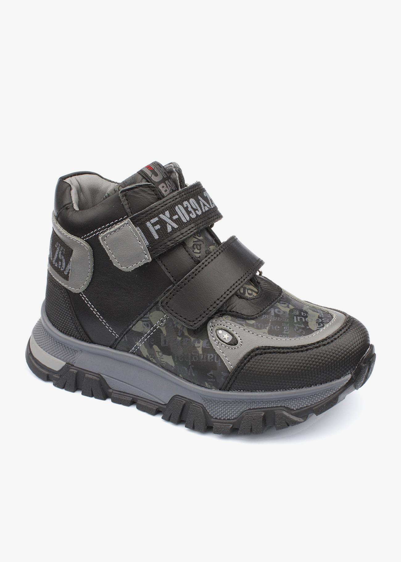 Стильные ботинки для мальчиков. Модель подходит на любую полноту, регулируется 2мя липучками. Анатомическая стелька, жесткий задник, подсводник. Гибкая носочная часть. Носочная часть с защитой от сбивания. Температурный режим от -5ти до +10 градусов.