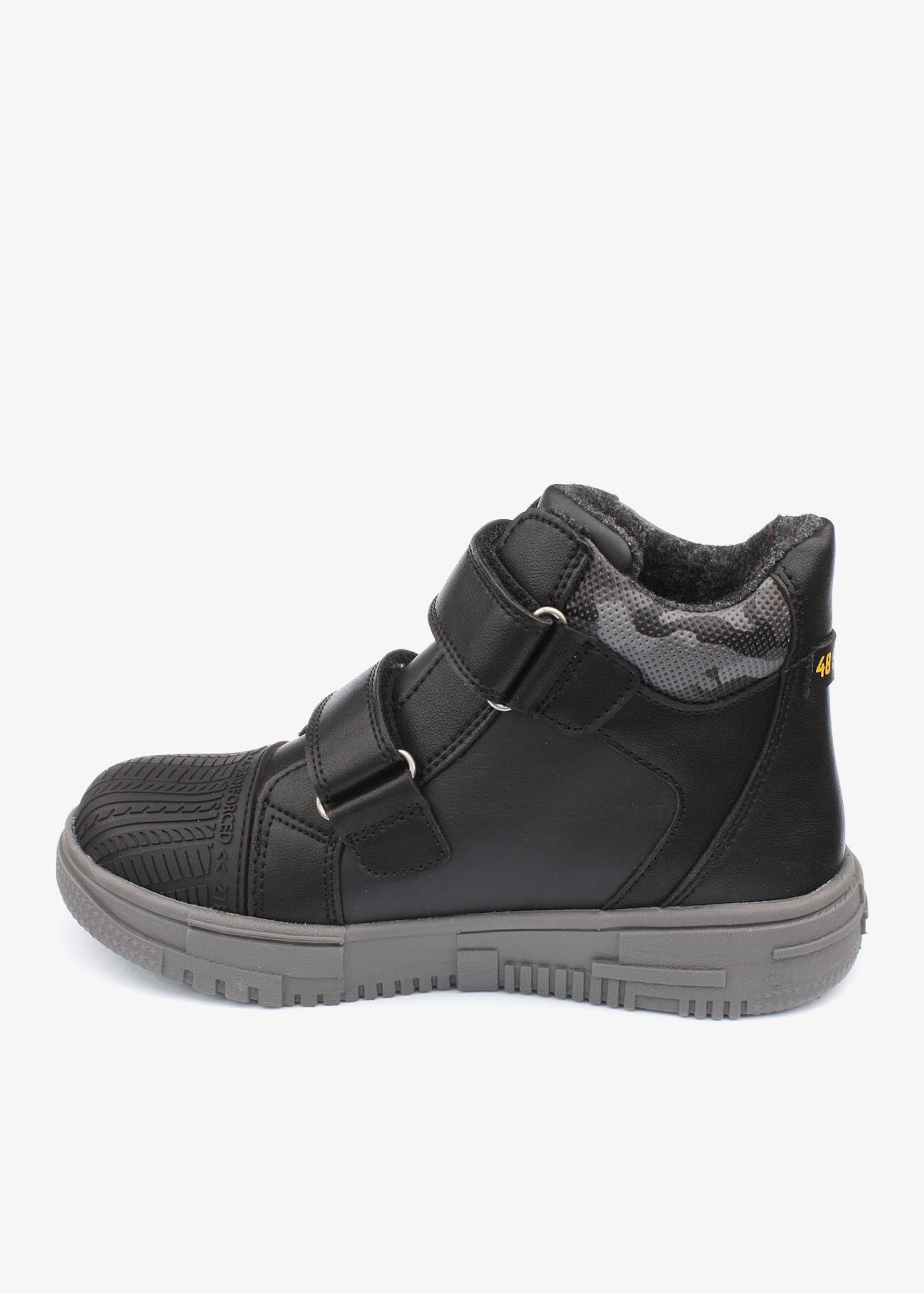Стильные ботинки для мальчиков. Модель подходит на любую полноту, регулируется 2мя липучками. Анатомическая стелька, жесткий задник, подсводник. Гибкая носочная часть. Носочная часть с защитой от сбивания. Температурный режим от -5ти до +10 градусов.