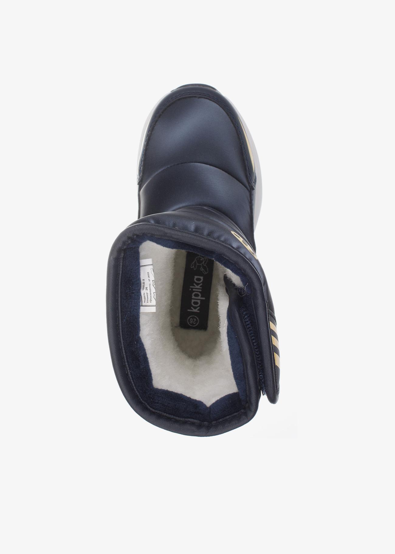 Стильные зимние дутики Kapika. Нескользящая подошва. На липучке. Модель удобно снимать и обувать. Верх модели выполнен из гидрофобного текстиля (отталкивает воду, не пропускает влагу) и экокожи. Материал подкладки - шерстяной мех. Идеальная обувь для активных прогулок в холодное время года. Модель оснащена теплой стелькой с фольгой, что уберегает от охлаждения и обеспечивает сохранение тепла в течение длительного времени.