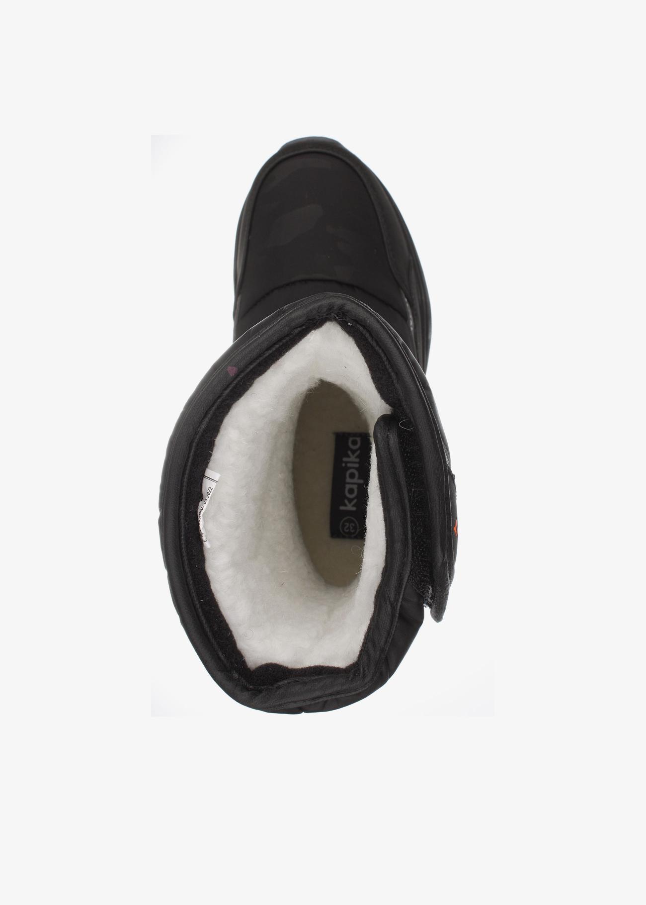 Стильные и красивые зимние дутики Kapika. Нескользящая подошва. На молнии, модель удобно снимать и обувать. Верх модели выполнен из гидрофобного текстиля (отталкивает воду, не пропускает влагу) и экокожи. Материал подкладки - шерстяной мех. Идеальная обувь для активных прогулок в холодное время года. Модель оснащена теплой стелькой с фольгой, что уберегает от охлаждения и обеспечивает сохранение тепла в течение длительного времени.