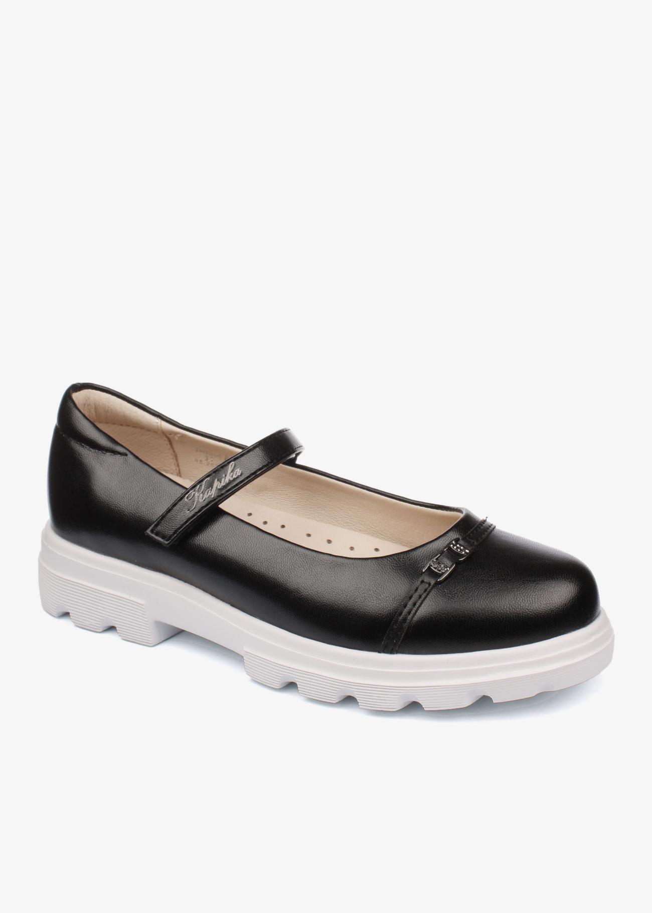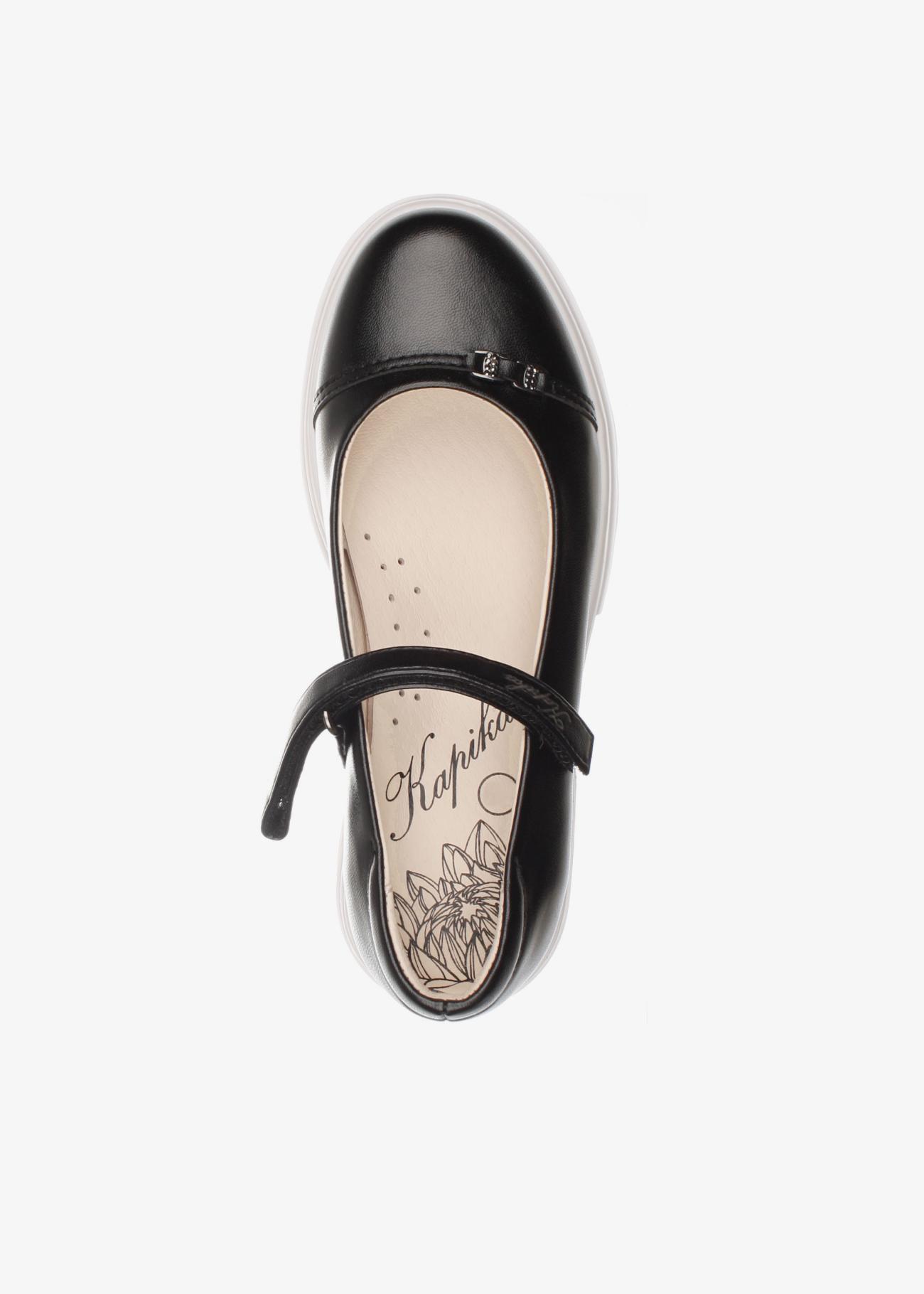 Очень стильные и аккуратные туфли Kapika для девочек. Верх - искусственная кожа, подклад - натуральная кожа. Красивый дизайн. Анатомическая стелька, жесткий задник, подсводник, гибкая носочная часть.