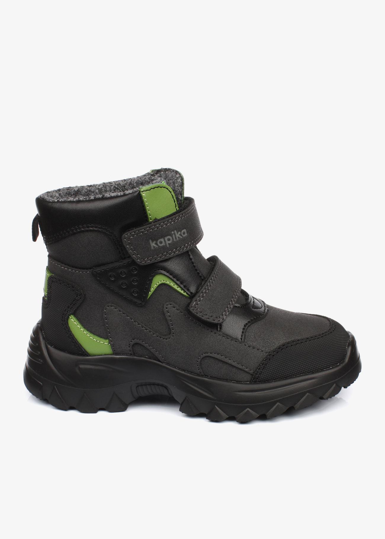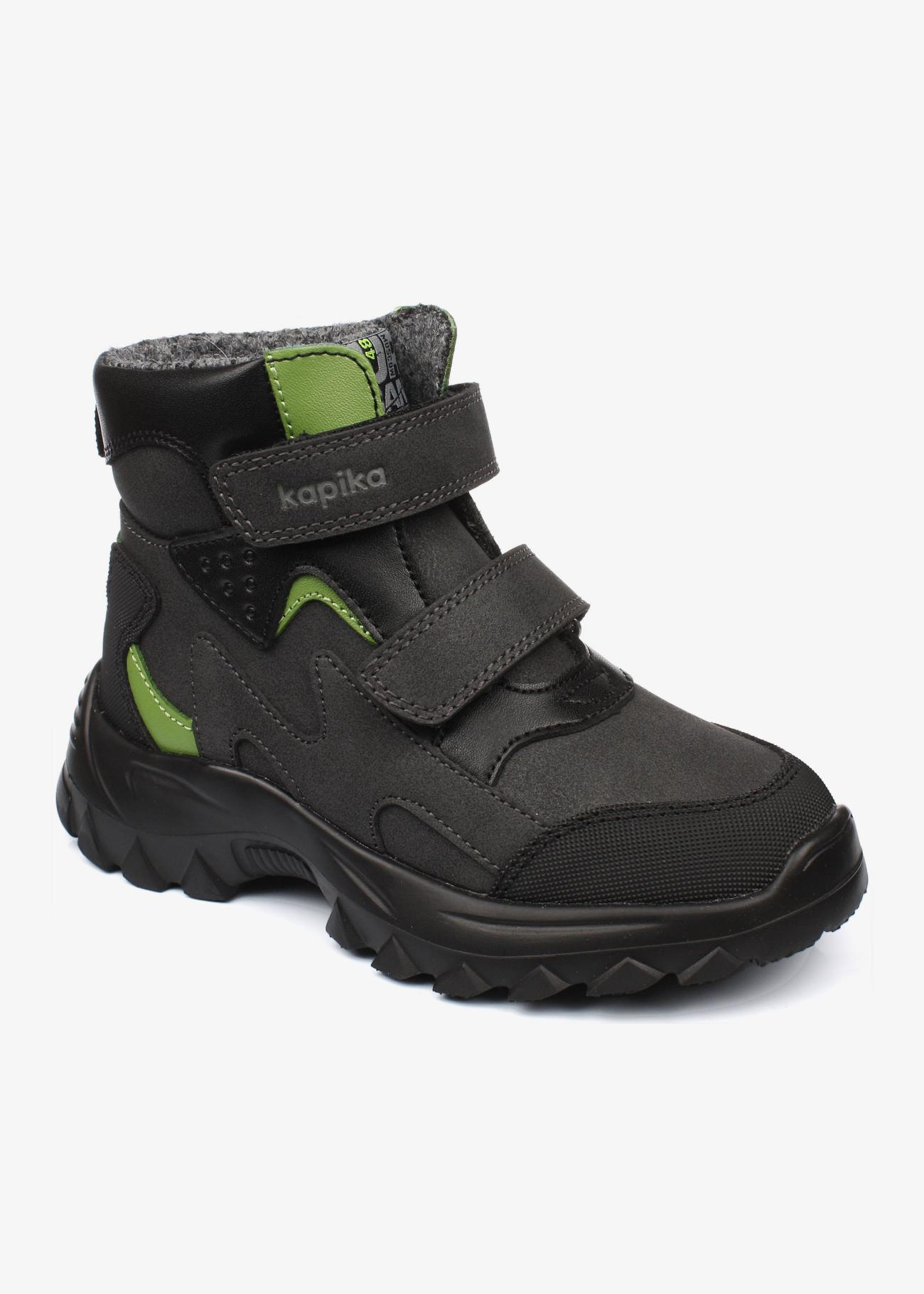 Очень красивые и стильные демисезонные ботиночки Kapika. Модель подходит на любую полноту. Регулируется липучками. Анатомическая стелька, жесткий задник. Носочная часть с защитой от сбивания. Температурный режим от -5ти до +10 градусов.