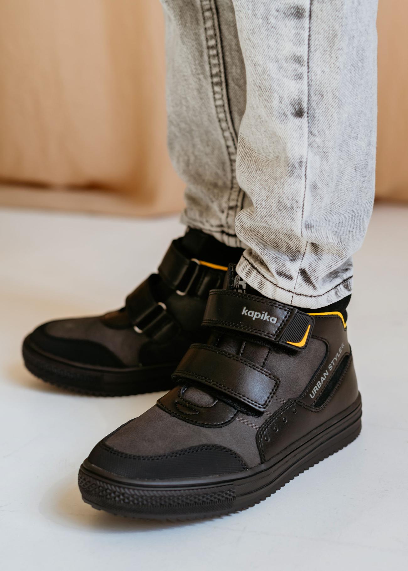Очень красивые и стильные демисезонные ботиночки Kapika. Модель подходит на любую полноту. Регулируется липучками. Анатомическая стелька, жесткий задник. Носочная часть с защитой от сбивания. Температурный режим от -5ти до +10 градусов.