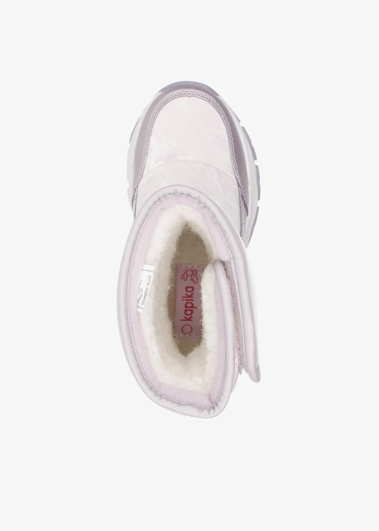 Стильные зимние дутики Kapika. Нескользящая подошва. На липучке, модель удобно снимать и обувать. Верх модели выполнен из гидрофобного текстиля (отталкивает воду, не пропускает влагу) и экокожи. Материал подкладки - шерстяной мех. Идеальная обувь для активных прогулок в холодное время года. Модель оснащена теплой стелькой с фольгой, что уберегает от охлаждения и обеспечивает сохранение тепла в течение длительного времени. Рекомендуем брать на размер больше от своего, т.к. мех достаточно плотный и занимает некоторое место в ботинке!