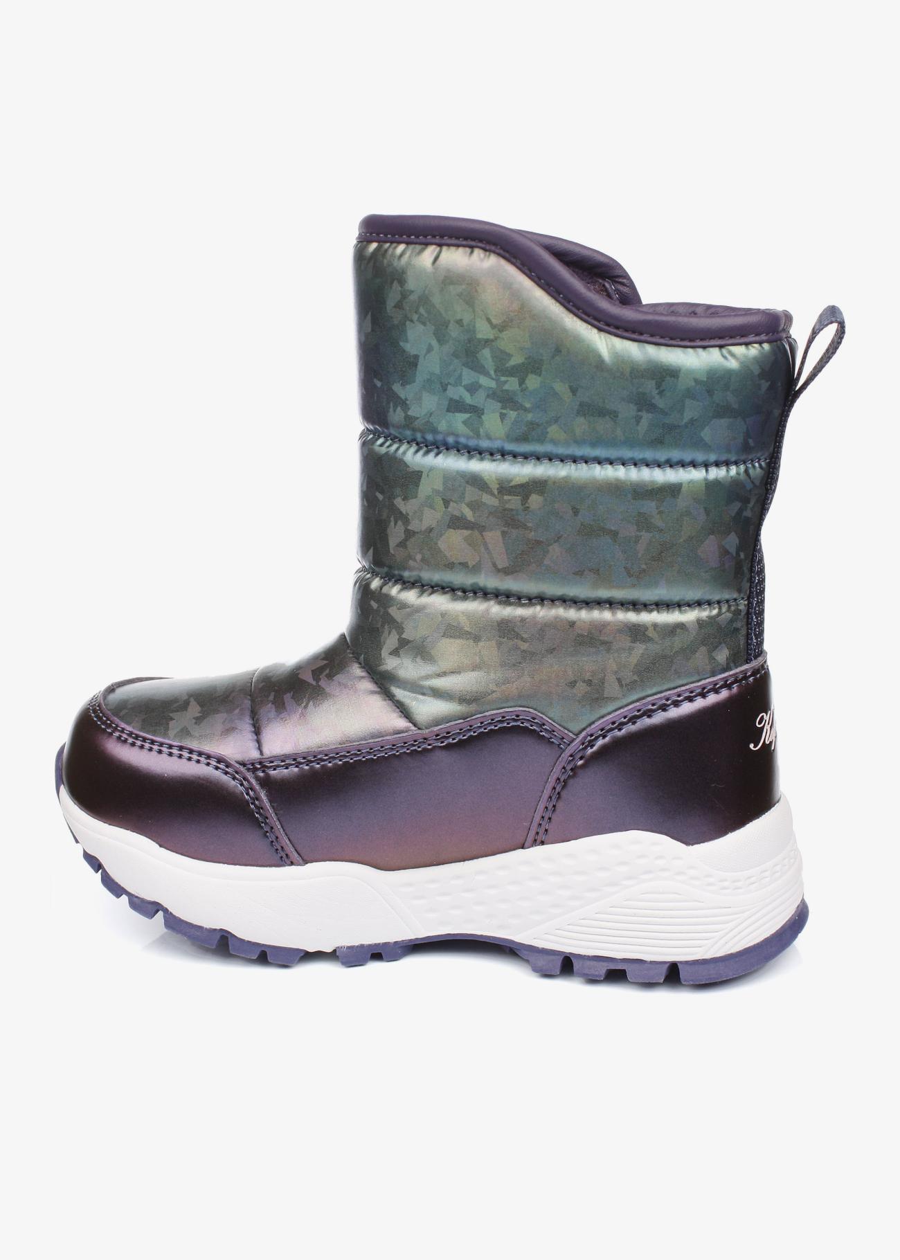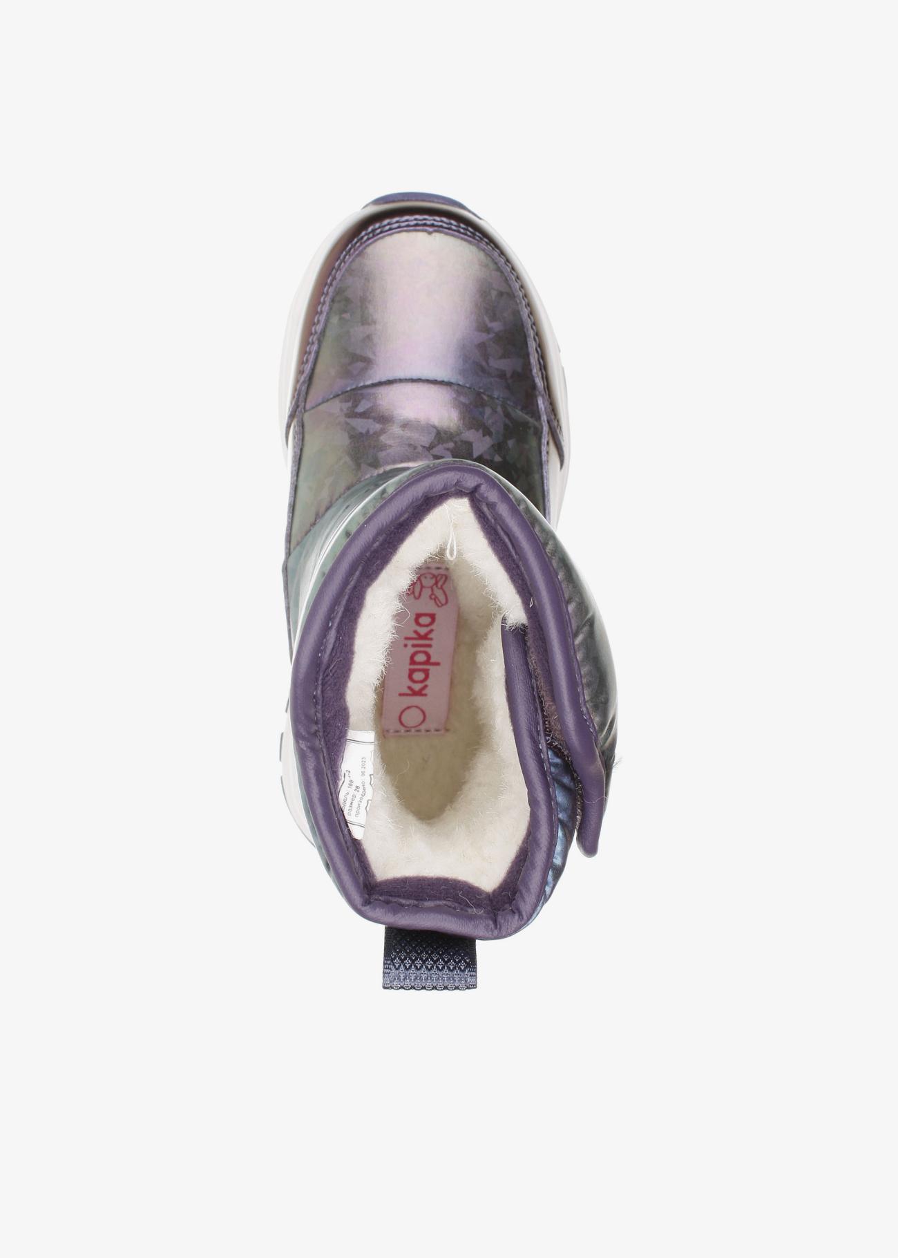 Стильные зимние дутики Kapika. Нескользящая подошва. На липучке, модель удобно снимать и обувать. Верх модели выполнен из гидрофобного текстиля (отталкивает воду, не пропускает влагу) и экокожи. Материал подкладки - шерстяной мех. Идеальная обувь для активных прогулок в холодное время года. Модель оснащена теплой стелькой с фольгой, что уберегает от охлаждения и обеспечивает сохранение тепла в течение длительного времени. Рекомендуем брать на размер больше от своего, т.к. мех достаточно плотный и занимает некоторое место в ботинке!