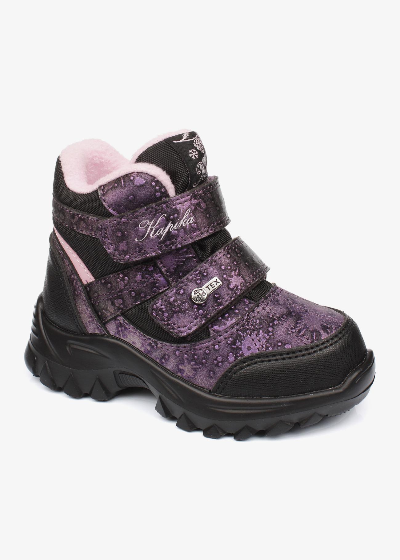 Ботинки с мембраной от Kapika. Модель подходит на любую полноту, регулируется липучками. Жесткий задник, анатомическая стелька. Носочная часть с защитой от сбивания. Верх - влаго-, водоотталкивающий. Ботинки идеально подходят для холодной осени, теплой зимы (на юге и всю зиму можно носить), ранней весны. Температурный режим от -20ти до +5ти градусов.