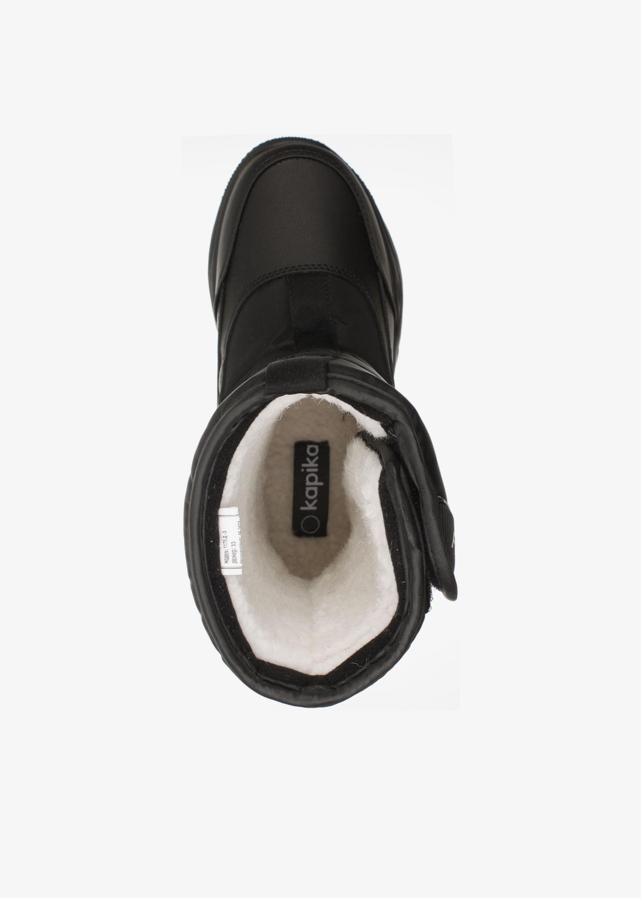Стильные зимние дутики Kapika. Нескользящая подошва. На липучке, модель удобно снимать и обувать. Верх модели выполнен из гидрофобного текстиля (отталкивает воду, не пропускает влагу) и экокожи. Материал подкладки - шерстяной мех. Идеальная обувь для активных прогулок в холодное время года. Модель оснащена теплой стелькой с фольгой, что уберегает от охлаждения и обеспечивает сохранение тепла в течение длительного времени. Рекомендуем брать на размер больше от своего, т.к. мех достаточно плотный и занимает некоторое место в ботинке!