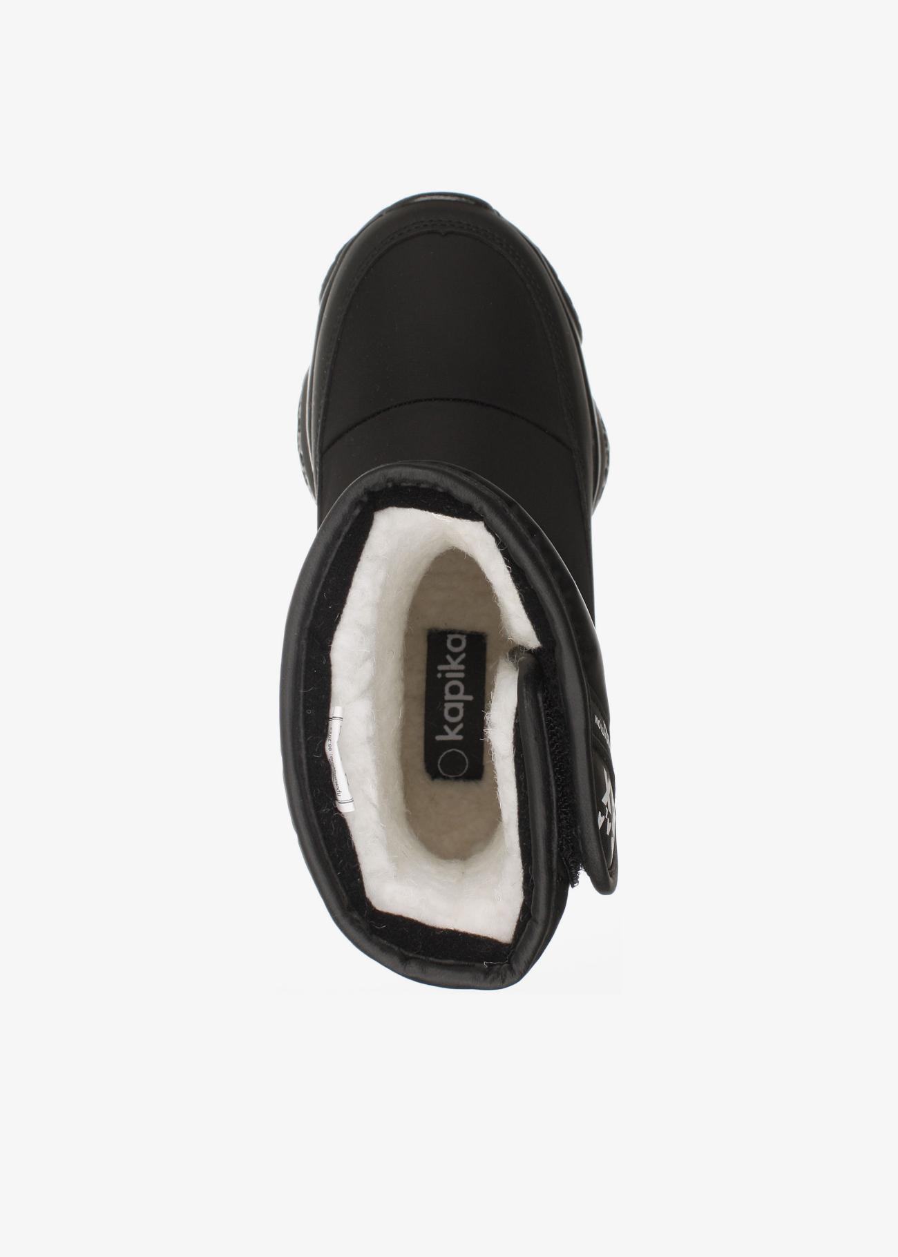Стильные зимние дутики Kapika. Нескользящая подошва. На липучке, модель удобно снимать и обувать. Верх модели выполнен из гидрофобного текстиля (отталкивает воду, не пропускает влагу) и экокожи. Материал подкладки - шерстяной мех. Идеальная обувь для активных прогулок в холодное время года. Модель оснащена теплой стелькой с фольгой, что уберегает от охлаждения и обеспечивает сохранение тепла в течение длительного времени. Рекомендуем брать на размер больше от своего, т.к. мех достаточно плотный и занимает некоторое место в ботинке!
