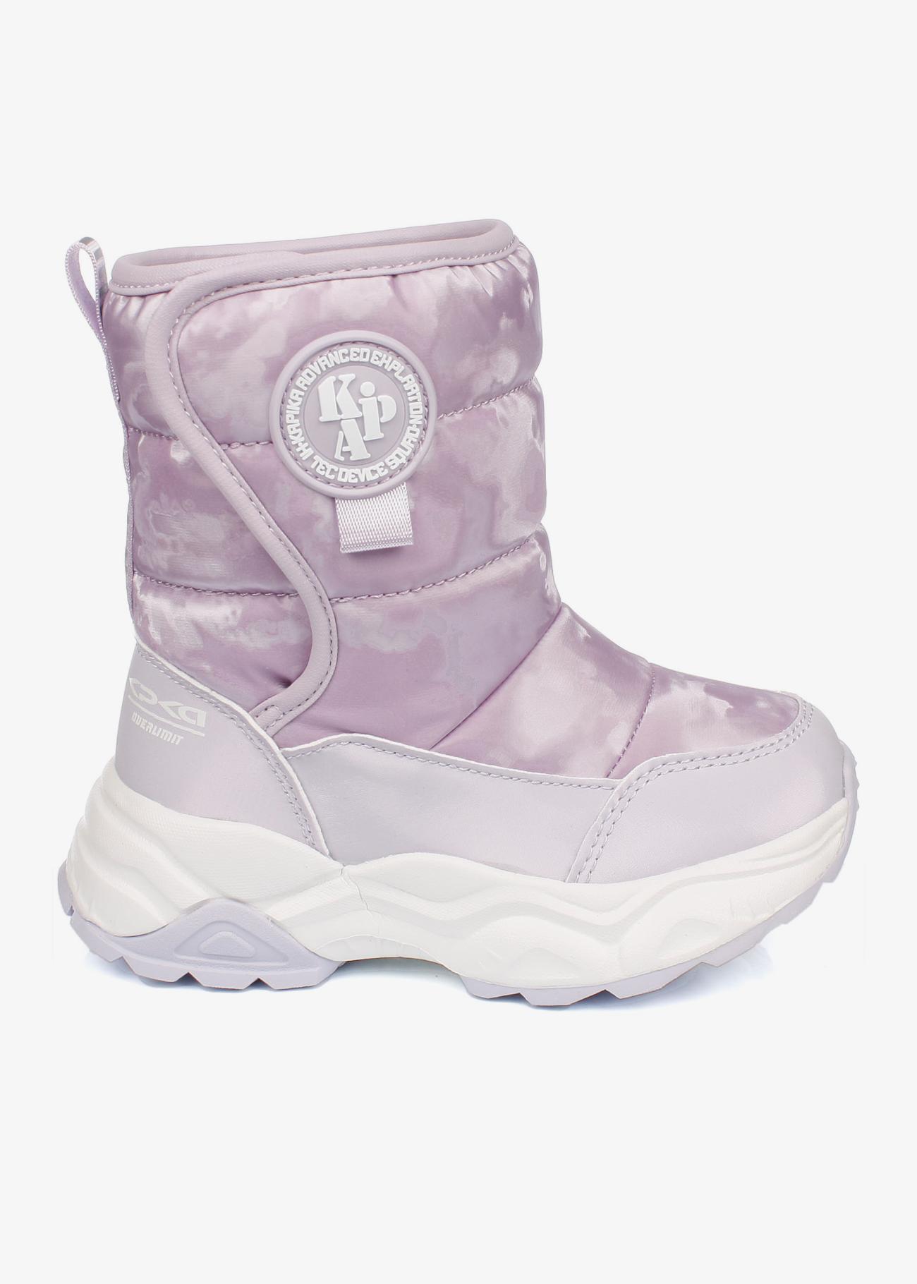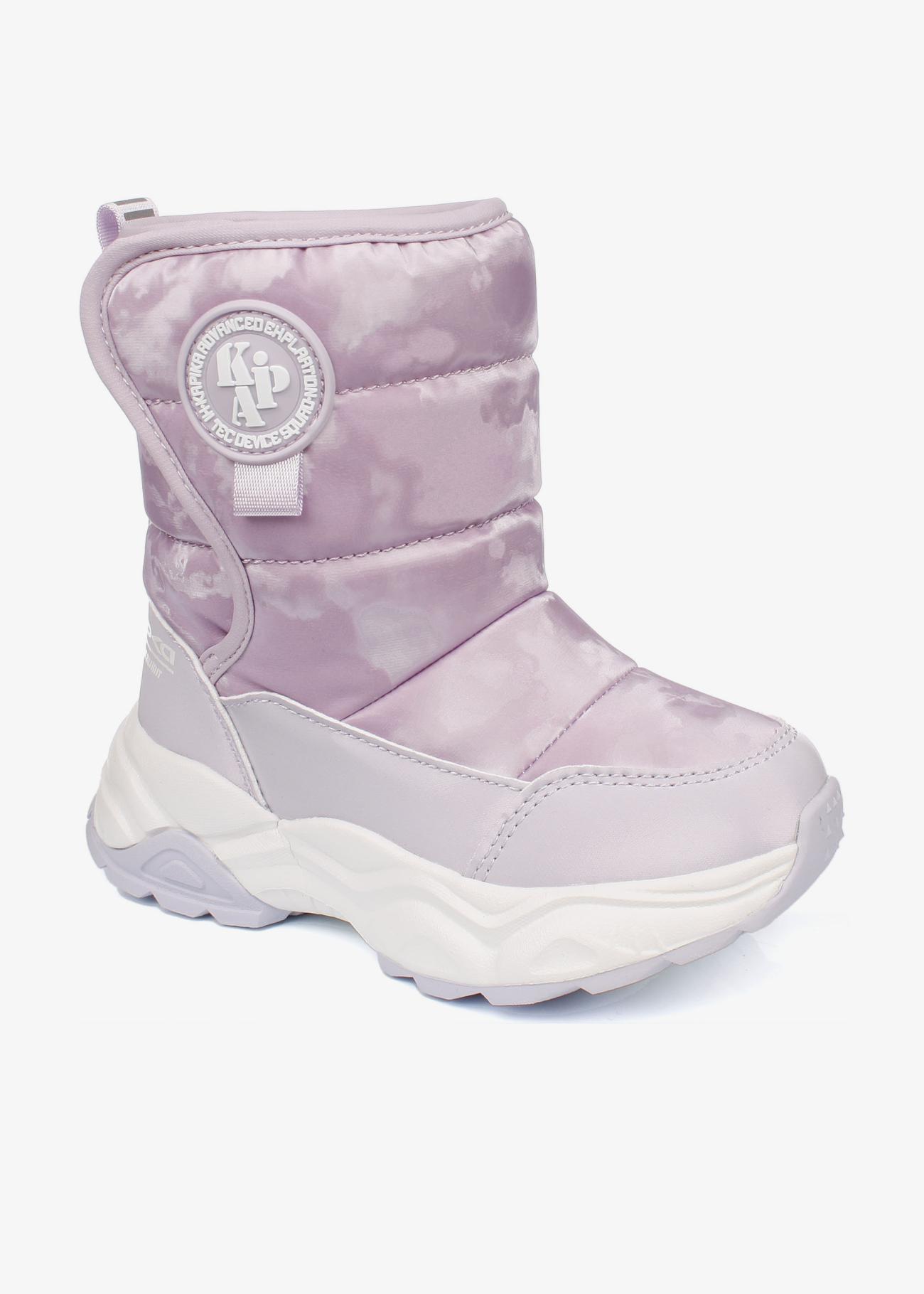 Стильные зимние дутики Kapika. Нескользящая подошва. На липучке, модель удобно снимать и обувать. Верх модели выполнен из гидрофобного текстиля (отталкивает воду, не пропускает влагу) и экокожи. Материал подкладки - шерстяной мех. Идеальная обувь для активных прогулок в холодное время года. Модель оснащена теплой стелькой с фольгой, что уберегает от охлаждения и обеспечивает сохранение тепла в течение длительного времени. Рекомендуем брать на размер больше от своего, т.к. мех достаточно плотный и занимает некоторое место в ботинке!