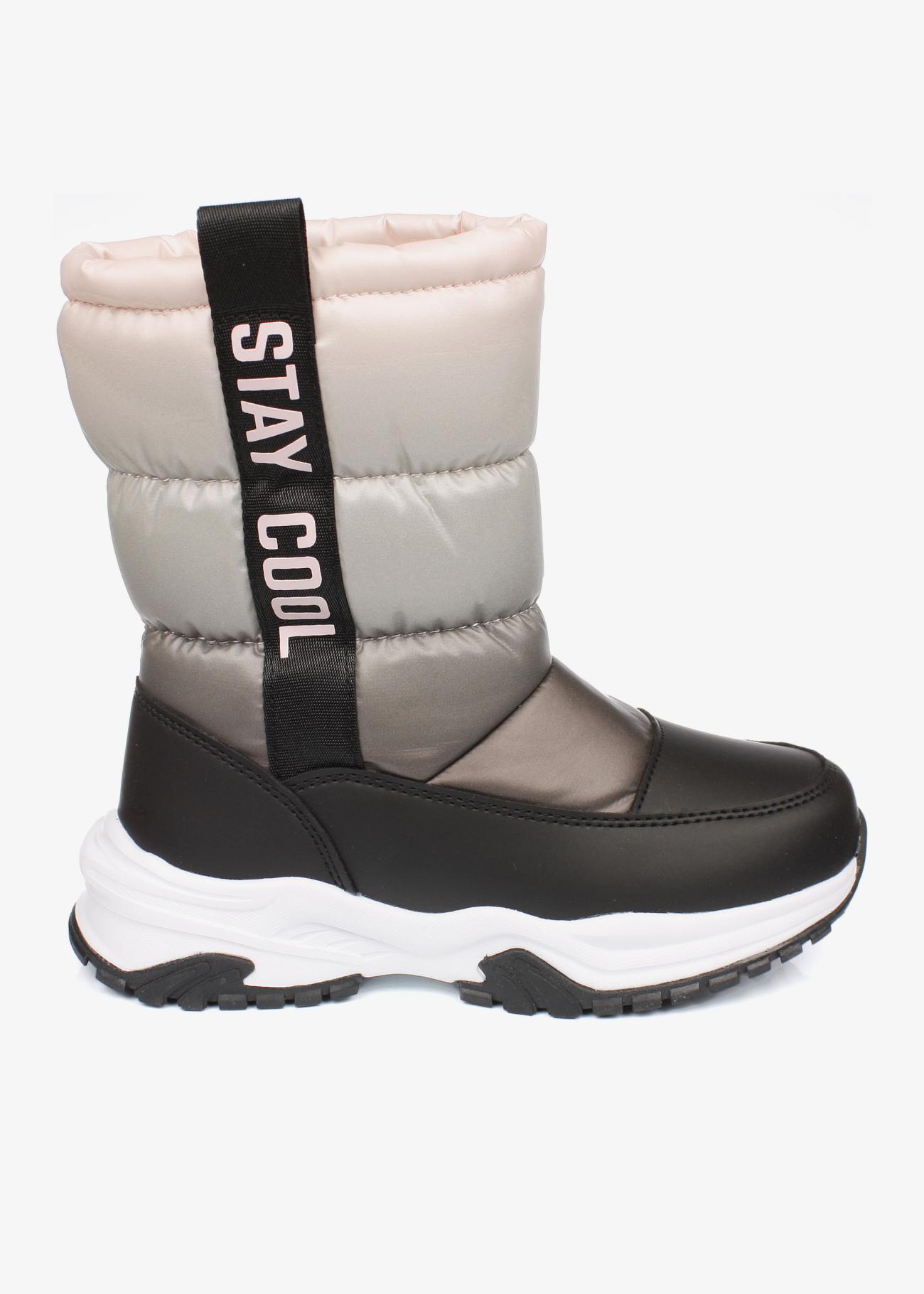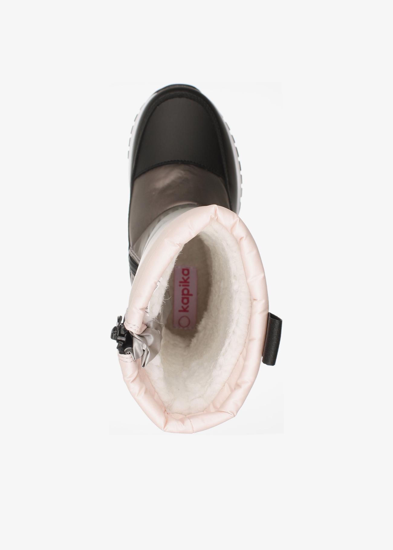 Стильные зимние дутики Kapika. Нескользящая подошва. На липучке, модель удобно снимать и обувать. Верх модели выполнен из гидрофобного текстиля (отталкивает воду, не пропускает влагу) и экокожи. Материал подкладки - шерстяной мех. Идеальная обувь для активных прогулок в холодное время года. Модель оснащена теплой стелькой с фольгой, что уберегает от охлаждения и обеспечивает сохранение тепла в течение длительного времени. Рекомендуем брать на размер больше от своего, т.к. мех достаточно плотный и занимает некоторое место в ботинке!