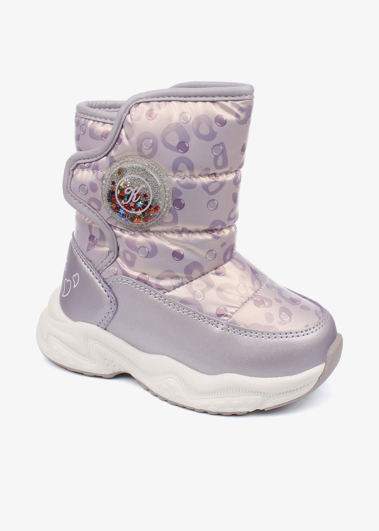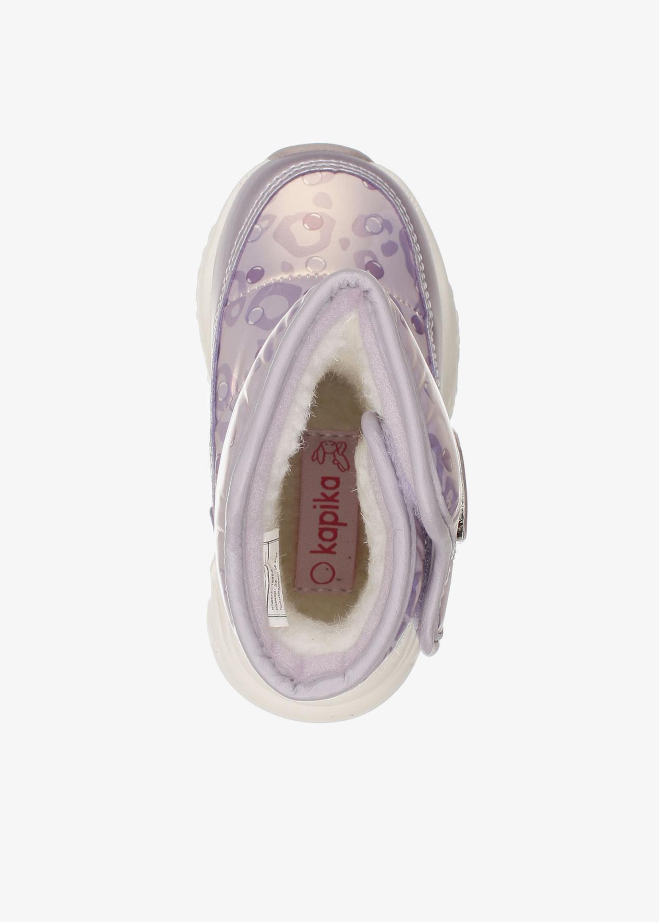 Стильные зимние дутики Kapika. Нескользящая подошва. На липучке, модель удобно снимать и обувать. Верх модели выполнен из гидрофобного текстиля (отталкивает воду, не пропускает влагу) и экокожи. Материал подкладки - шерстяной мех. Идеальная обувь для активных прогулок в холодное время года. Модель оснащена теплой стелькой с фольгой, что уберегает от охлаждения и обеспечивает сохранение тепла в течение длительного времени. Рекомендуем брать на размер больше от своего, т.к. мех достаточно плотный и занимает некоторое место в ботинке!