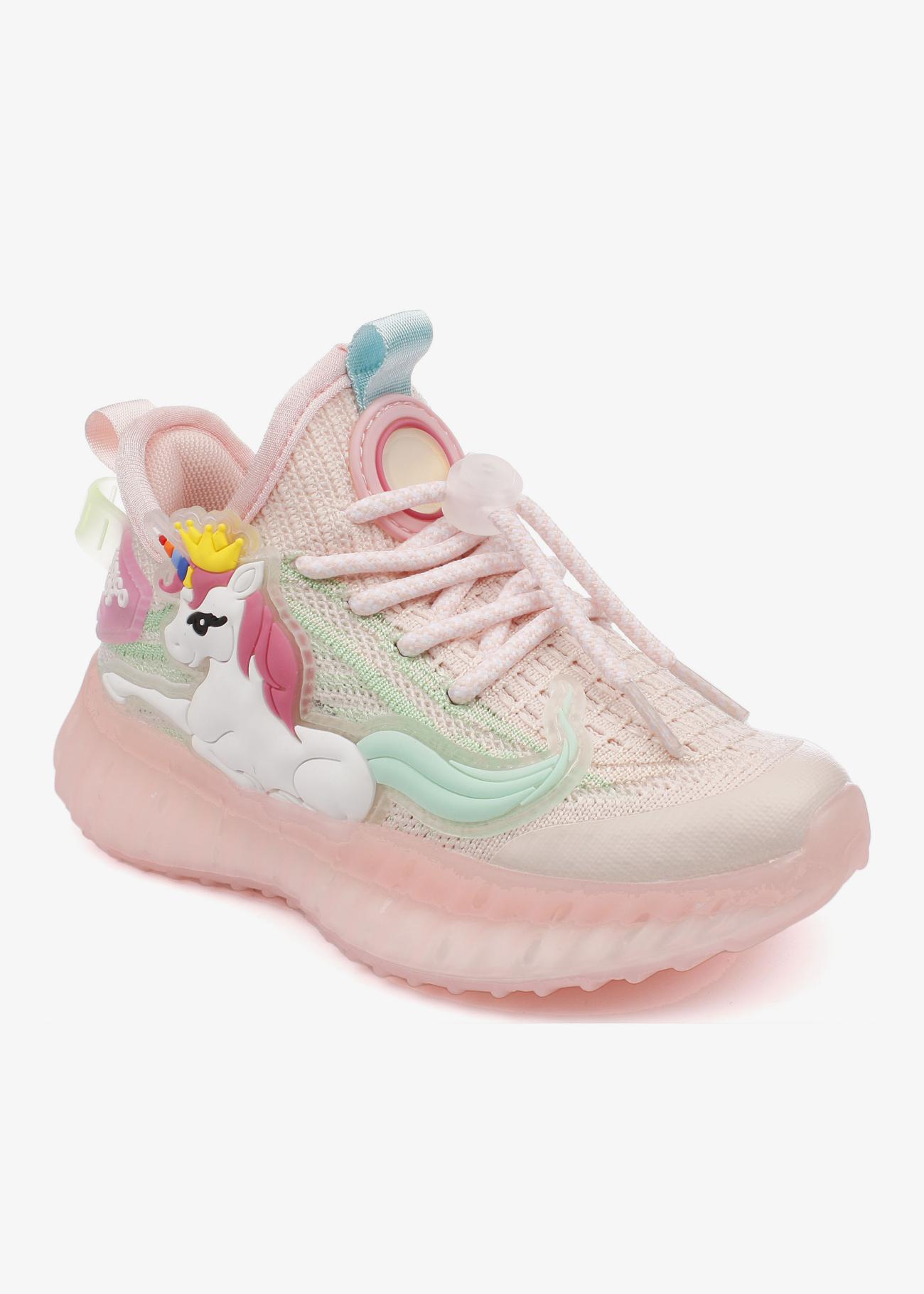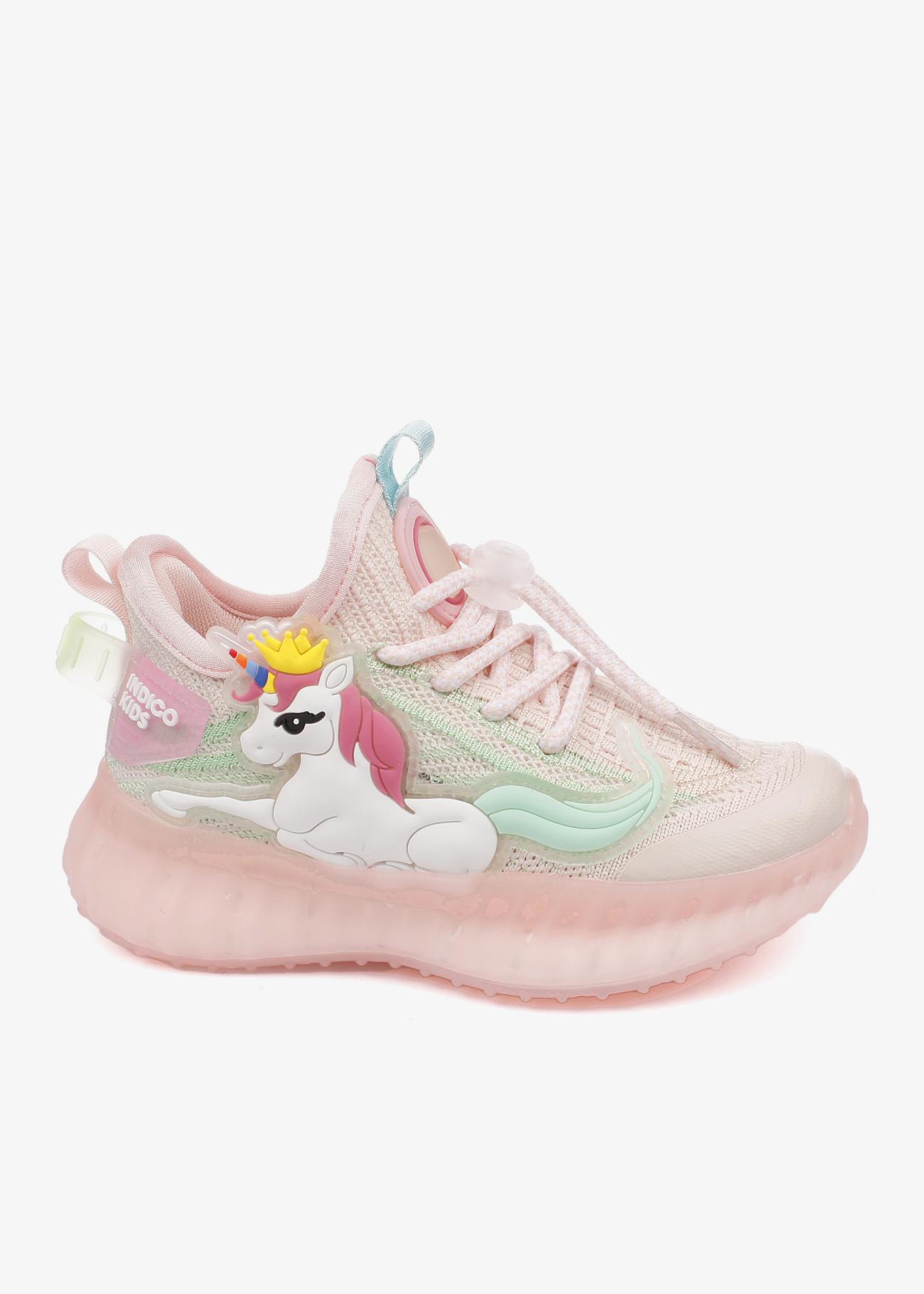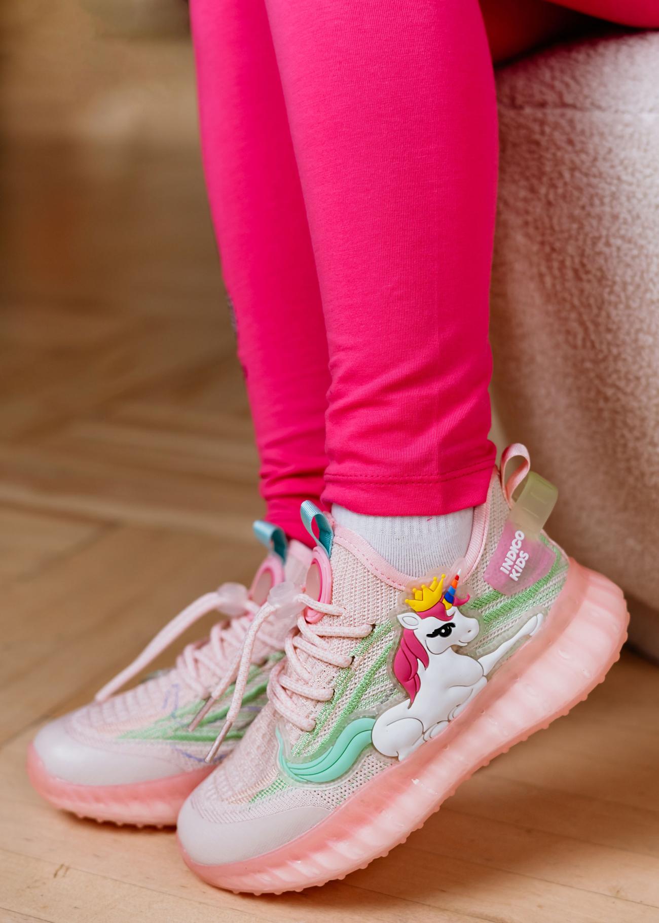 Кроссовки для девочки с яркими светящимися LED единорогами. Изики - самая актуальная летняя обувь для ребенка. Это стильная, максимально комфортная пара с верхом из дышащего текстиля. Подошва из полиуретана - легкая, гибкая, с хорошей амортизацией. Стелька анатомическая, антибактериальная с вкраплениями угля поддерживает свод стопы в правильном положении. Подъем регулируется с помощью эластичного шнурка с фиксатором. На боковой поверхности кроссовка от легкого движения ярко, разными цветами мигает единорог.
