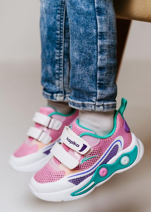 Очень легкие кроссовки Kapika для девочек. Анатомическая стелька, жесткий задник, подходят на любую полноту. Липучка и резинка-утяжка по полноте. Модель со сквозной перфорацией!