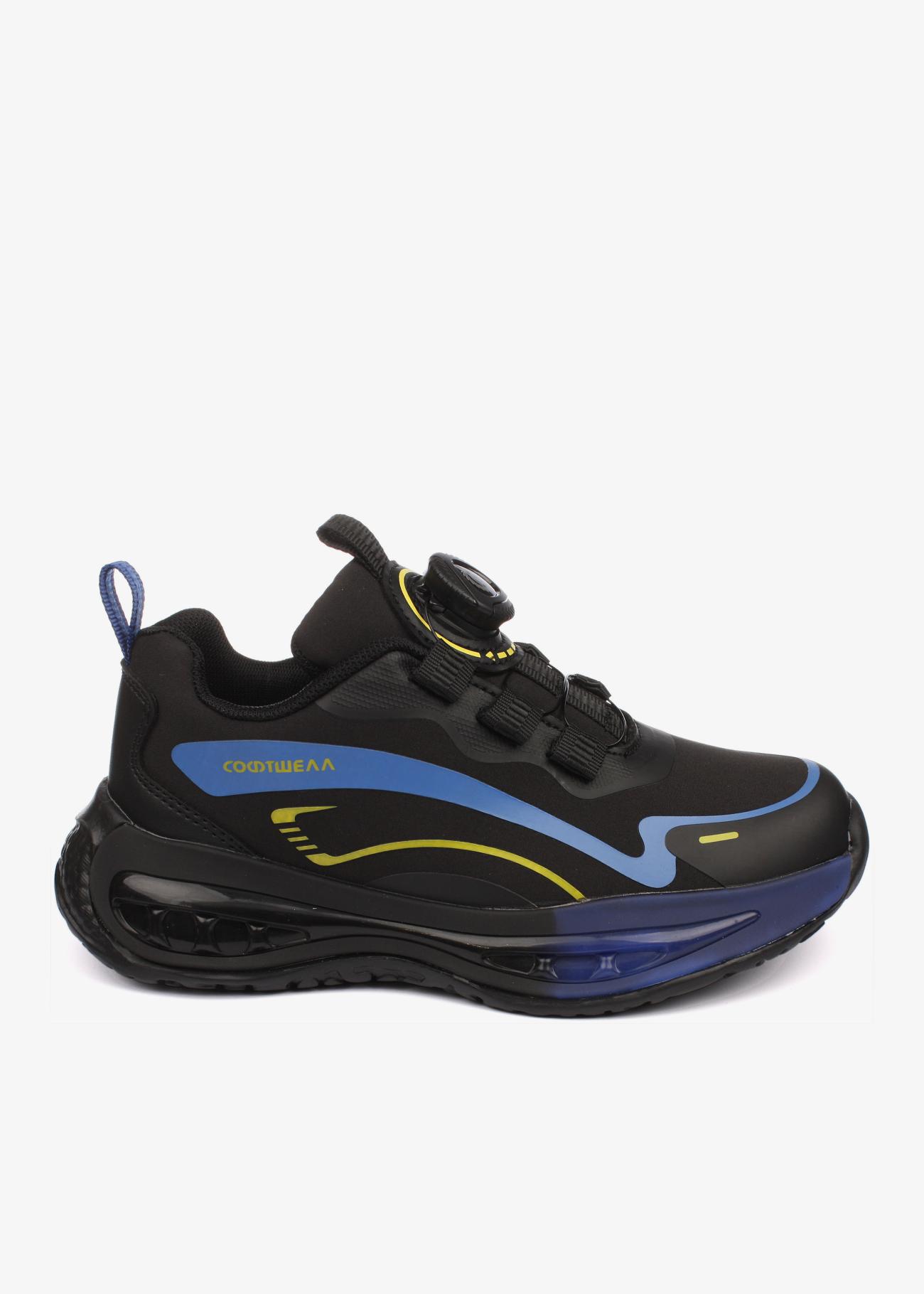 Очень стильные кроссовки для мальчиков. Модель выполнена из материала софтшелл (верх - влаго, - водоотталкивающий), подклад - текстиль, стелька выполнена из гигроскопичного, воздухопроницаемого материала. Жесткий задник, анатомическая стелька, гибкая носочная часть. Самозатягивающийся шнурок.