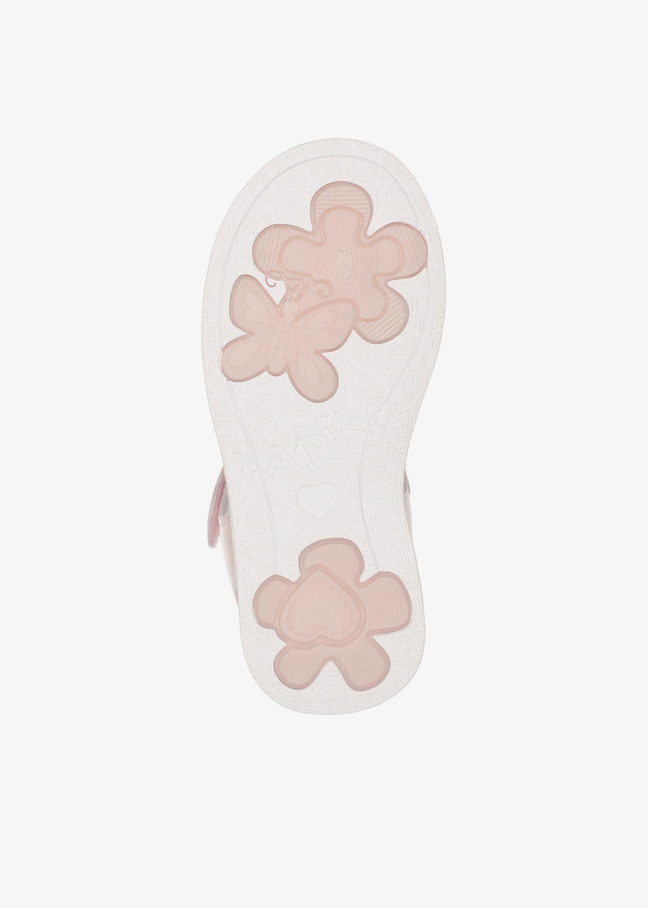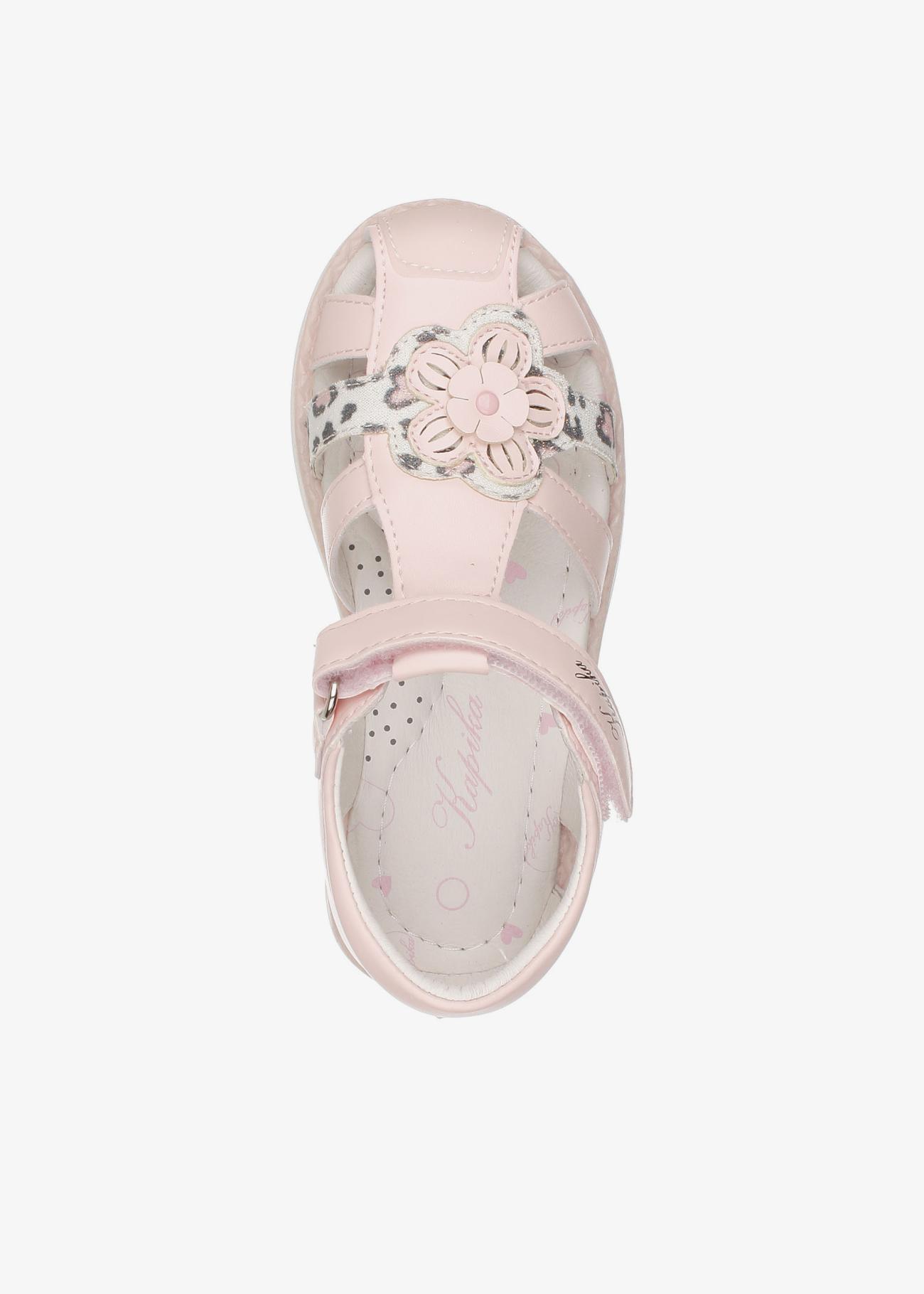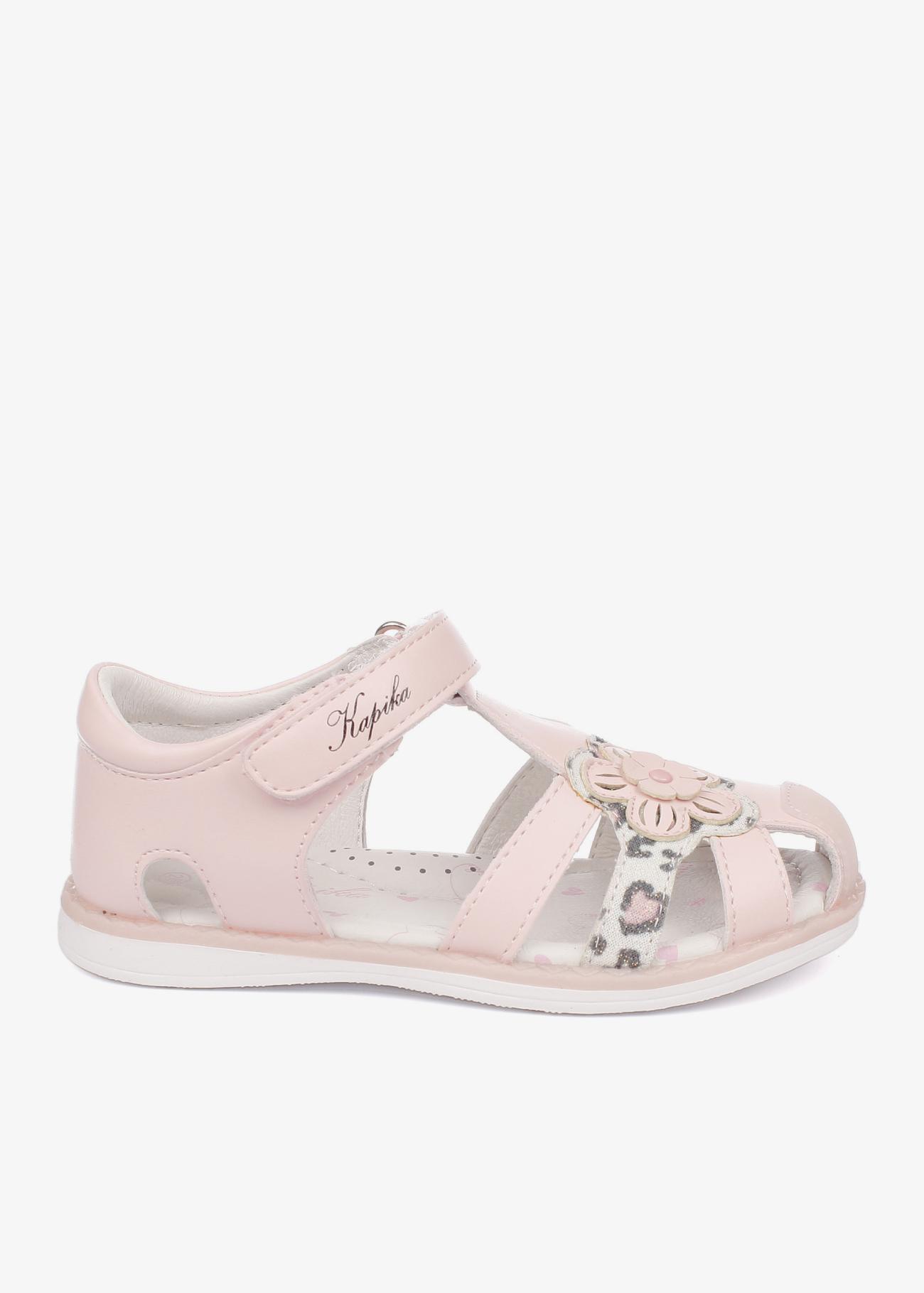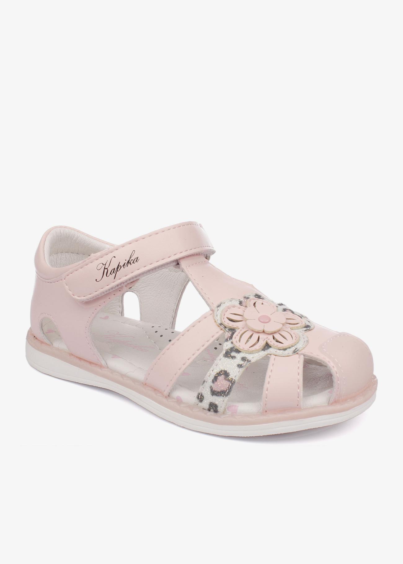 Сандалии для девочки с с верхом из высокопрочной искусственной кожи. Подкладка и стелька из натуральной кожи. Анатомическая стелька, подсводник, гибкая носочная часть. Сбоку ЛИПУЧКА для удобства обувания.