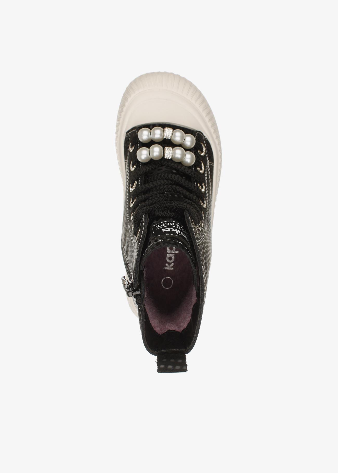 Очень красивые и стильные демисезонные ботинки Kapika. Модель подходит на любую полноту. Регулируются по полноте шнуровкой, сбоку молния. Анатомическая стелька, жесткий задник. Носок с защитой. Температурный режим от -5ти до +10 градусов. Рекомендуем делать замер стопы и сообщать нашему менеджеру!