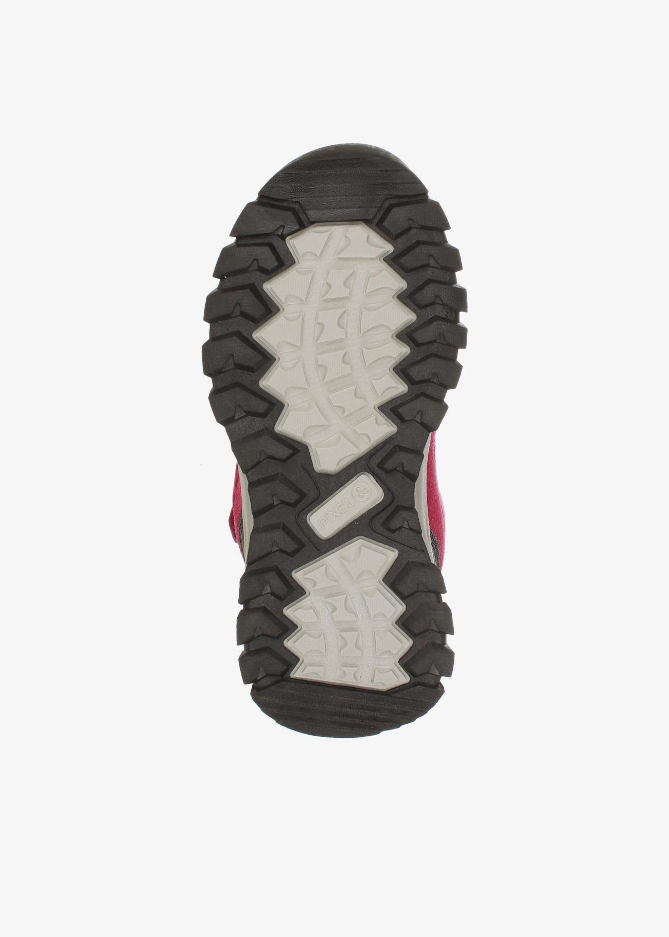 Ботинки PIXEL — это стильные и теплые ботинки для девочек, идеально подходящие для демисезона. Выполненные в ярком малиновом цвете, они обязательно привлекут внимание вашего ребенка. Изготовленные из непромокаемого текстиля и искусственной кожи, ботинки надежно защищают от влаги. Подкладка и стелька из натуральной шерсти обеспечивают тепло и комфорт в прохладную погоду. Температурный режим от -5 до +15 градусов позволяет носить их как ранней весной, так и поздней осенью. Легкость и удобство — главные особенности этой модели. Регулируемый подъем на липучке и резинке позволяет легко подобрать оптимальную полноту, а жесткий задник и гибкая носочная часть способствуют правильному положению ноги и предотвращают натирание. Носок с защитой от сбивания делает ботинки безопасными для активных игр на свежем воздухе. ВНИМАНИЕ: ботинки идут в размер! Делайте замер стопы ребенку и обращайте внимание на размерную сетку!