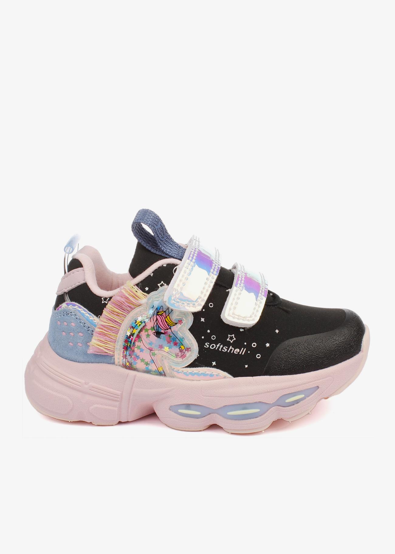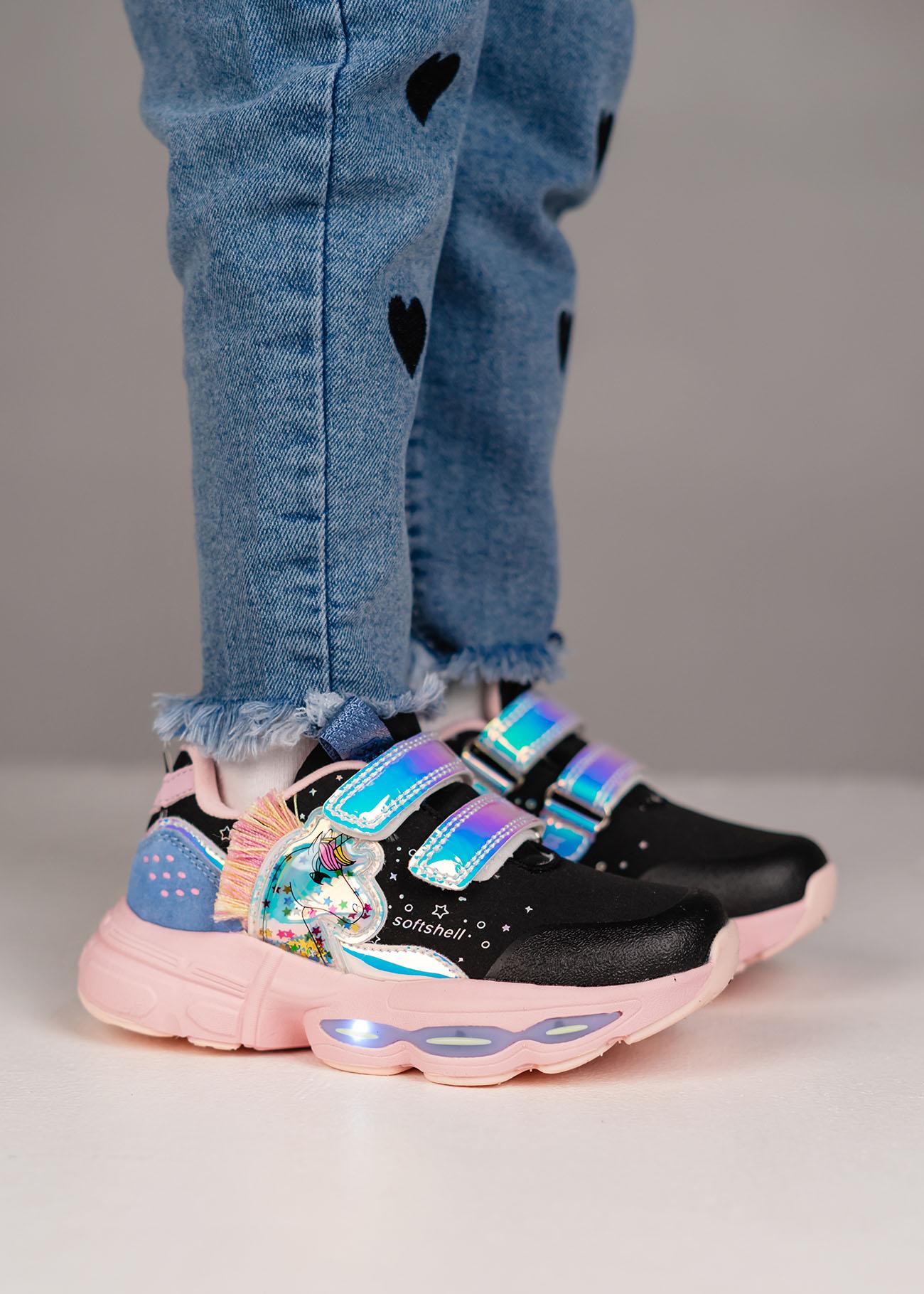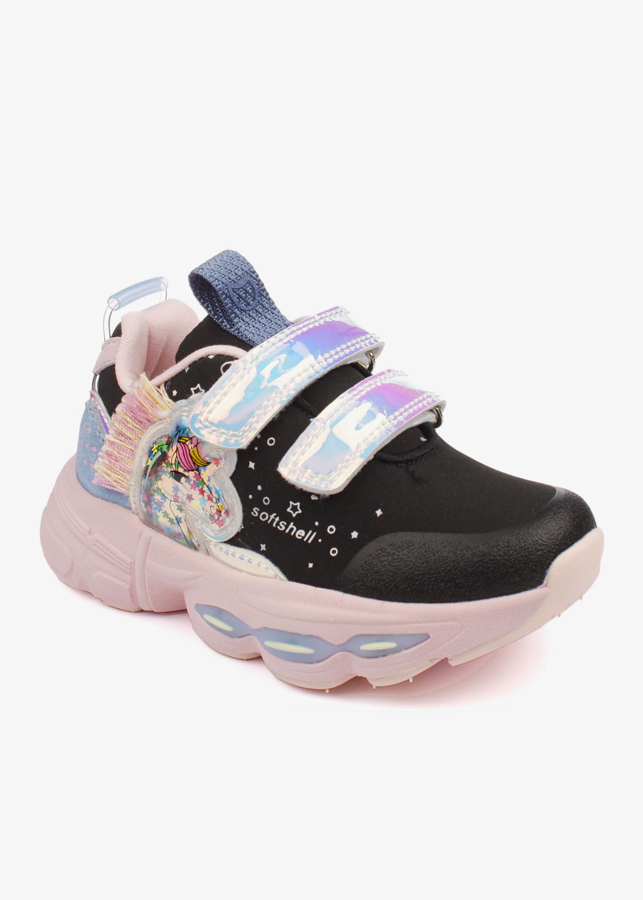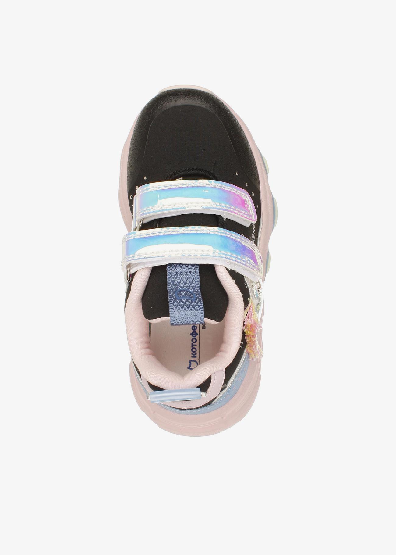 Кроссовки для девочек с верхом из материала SoftShell. Подкладка-хлопок, позволяет ножкам "дышать". Подошва выполнена из ЭВА, ультралегкий амортизирующий материал. Анатомическая стелька внутри, жесткий задник. Подходят на любую полноту. Светятся при ходьбе.