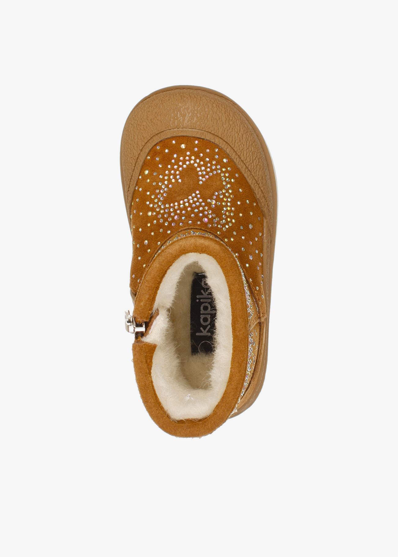 Стильные зимние угги Kapika. Нескользящая подошва. На молнии, модель удобно снимать и обувать. Верх модели выполнен из натуральной замши. Материал подкладки - шерстяной мех. Идеальная обувь для активных прогулок в холодное время года. Модель оснащена теплой стелькой с фольгой, что уберегает от охлаждения и обеспечивает сохранение тепла в течение длительного времени. Рекомендуем брать на размер больше от своего, т.к. мех достаточно плотный и занимает некоторое место в ботинке!