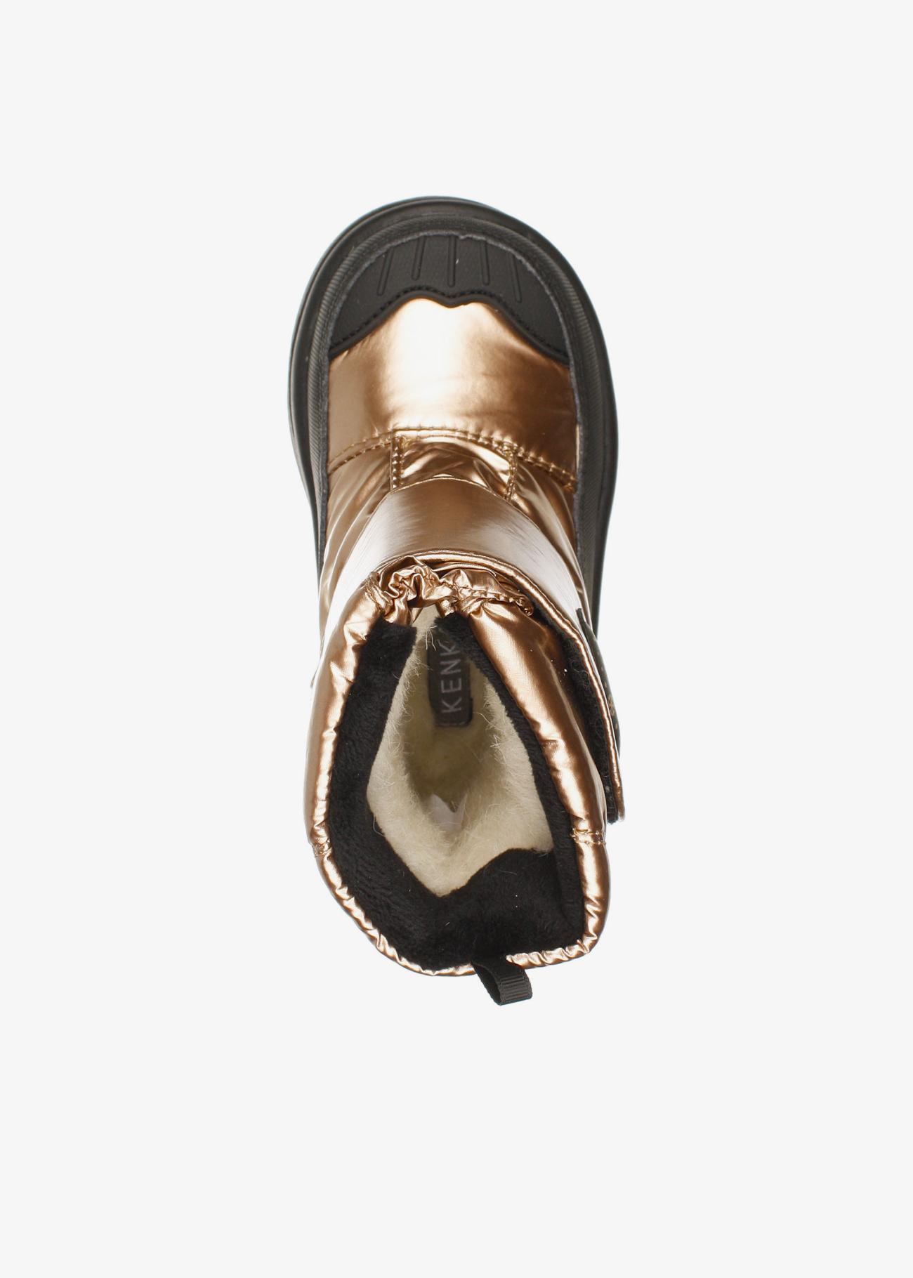 Стильные зимние дутики KENKA. Нескользящая подошва. На липучке, модель удобно снимать и обувать. Верх модели выполнен из гидрофобного текстиля (отталкивает воду, не пропускает влагу) и экокожи. Материал подкладки - шерстяной мех. Идеальная обувь для активных прогулок в холодное время года. Рекомендуем брать на размер больше от своего, т.к. мех достаточно плотный и занимает некоторое место в ботинке! Модель МАЛОМЕРИТ на размер!